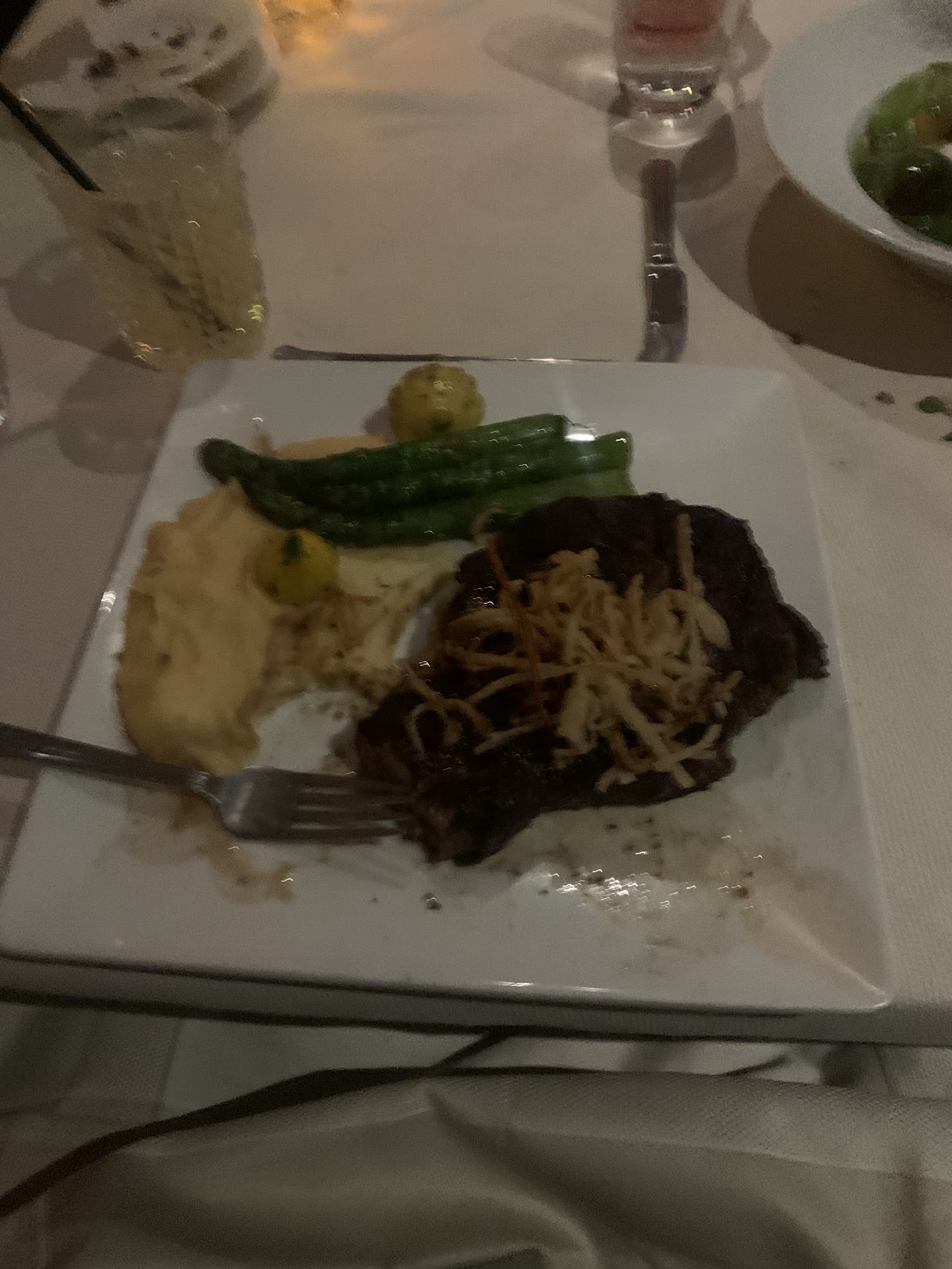 The mashed potatoes that come with the chicken was nasty 🤢 and the chicken was nasty too.🤢I have been getting this same dish for years. My husband’s soup was cold..The crab cakes were good but it looked really bad plated! My husband got prawns and they were cold also! He usually gets the lamb chops which are usually delicious but very expensive ($80).