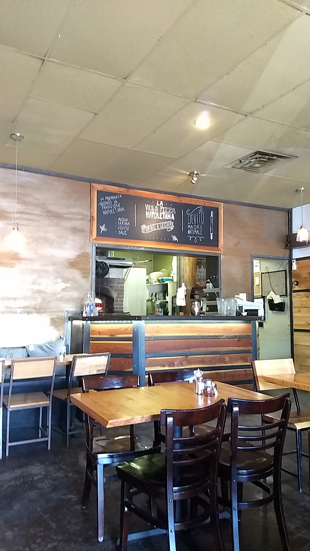 Read moreI have passed this place time and time again in the westside and wanted to give it a try. I was craving pizza, so I ordered the 'Smoked' Pizza for $15 to-go from about 10 minutes away. I walked in the little cafe and it is ALIVE! If that's what you're looking for then I'm sure you will enjoy sitting in for your meal. Nice atmosphere, everyone looked happy and chatting away. It's a pretty good noise level, so it's not the place for a quiet meal. Pizza was ready quick, so by the time I got to the counter my pizza was good to go. Pizza looked and smelled great. I could smell everything - the smokiness (brick oven), peppers, and fennel sausage! I just didn't like the size for the price, medium. It was just a medium size pizza 😐. Since I picked it up to go, I immediately had a slice inside my car to catch the freshness of the pizza. VERY VERY GOOD and smokey 😋! The flavor is unique and delicious, so it can't be compared to any other pizza place - franchise or not. I got home and the pizza (dough) was already getting stale and chewy like a day old breadstick. Still tasted delicious, but not as good as fresh, so if you're gonna have a pizza eat at the cafe and make sure to take your wine since its BYOB. I heated 1 slice up with a toaster oven to see if it would help and it didn't. I tried the water cup in microwave for another slice and that didn't help either 😀. The pizza is definitely good, but I wouldn't pay more than $10 for it at that size, again no matter how different the flavor. Italians in Italy don't even pay that much for it 😂. If you got money to blow or try to impress a date or whatever go for it. - 1 star for value (pizza). Definitely overpriced since there really isn't much to justify the margin. I'll probably return to try for a calzone or pasta since their spices...