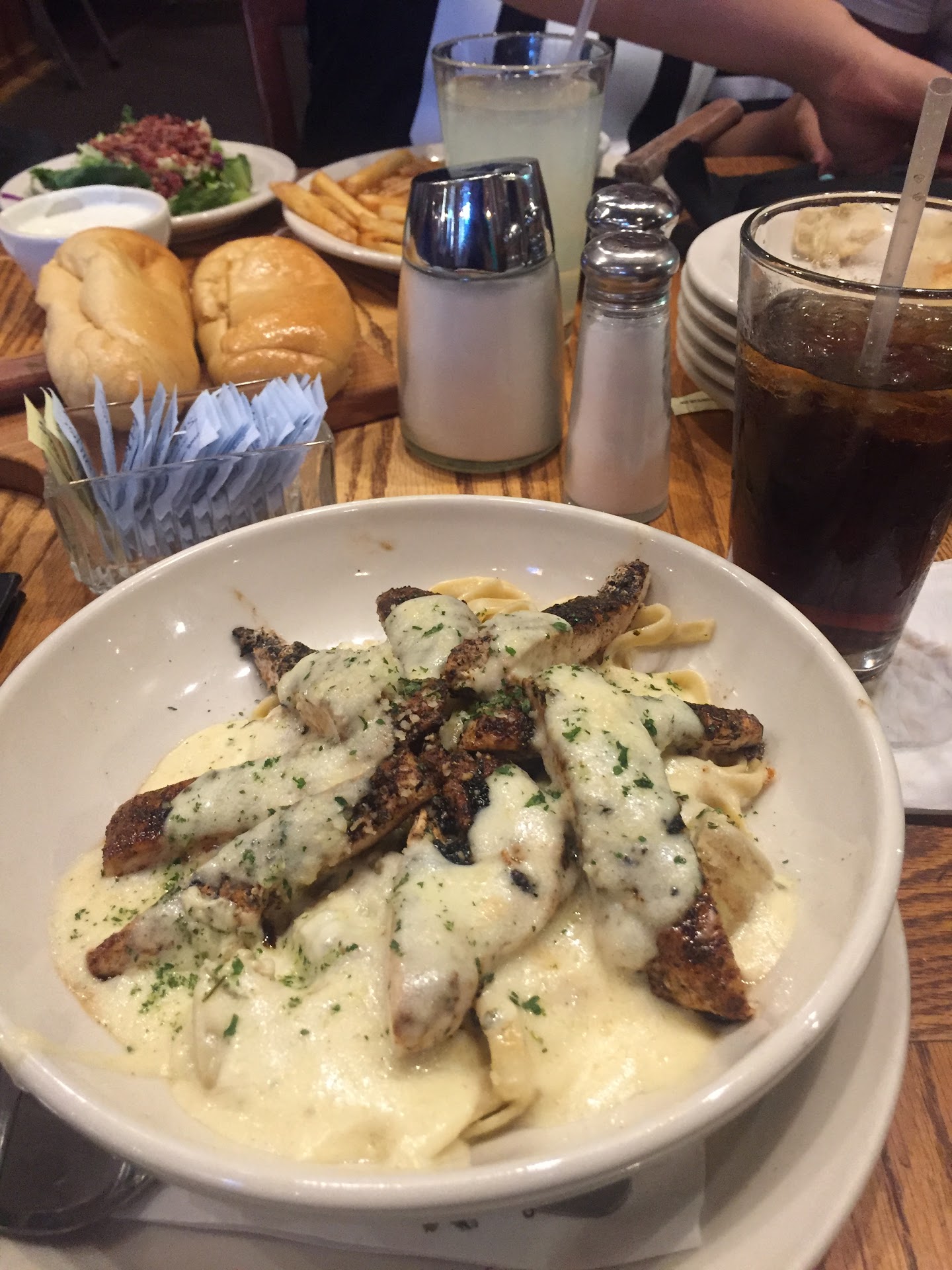 I ordered a sample platter for the appetizer which had fried small shrimp which was very crunchy and good. Mozzarella sticks were super cheesy and wantons. The appetizers in all were mediocre and one could have ordered at the Applebee's across the street with same end result.