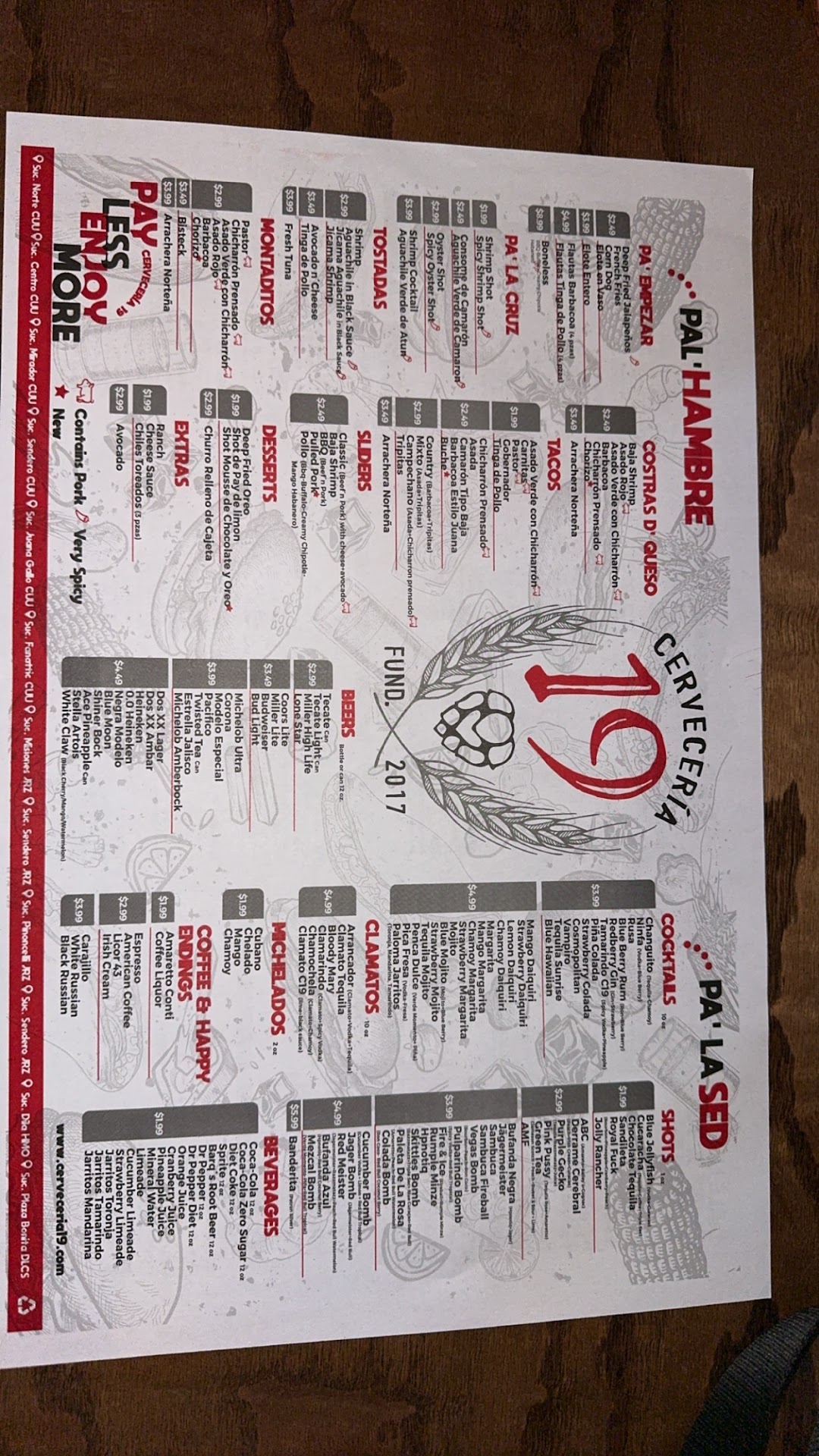 Read moreThe famous Juarez bar and restaurant is definitely making its presence known in El Paso. The location has a very welcoming and friendly environment. Has plenty of good views, plenty of tables, plenty of servers, plenty of good music. The menu has so many selections, you could have a little bit of everything. The prices on the food and drinks are at GREAT PRICING. The margaritas were drinkable, tasted good but weren't very strong. The food was also edible but was missing a little something. Ive had better tasting tacos somewhere else. The restrooms were clean and fresh. Also when I arrived for being a friday at 3pm, theres was a crowd crowd. So that goes to tell you Cerveceria 19 is a contender in the bar n grill industry. Overall it was a pleasant experience, drinks were priced right, the food was priced right too, I would...