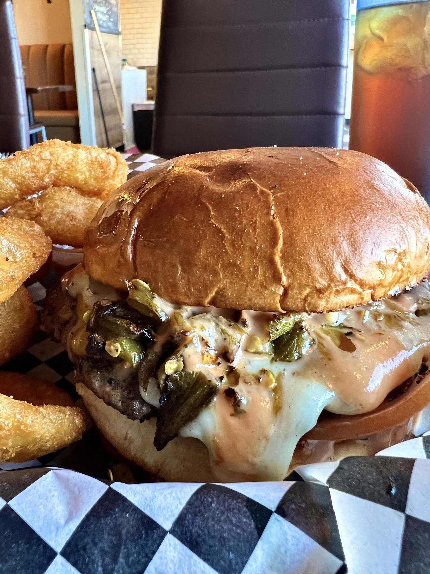 Ā Ā Ā Read moreThis place is a bit dark and has trendy bar decor with lots of polished wood and metal chairs. The tables are fairly small, seating no more than four people per table, but the staff was accomodating to our larger party and helped us move two tables together. They serve all different kinds of alcohol here, and have several beers on tap. My husband got the ahi tuna burger, I got the green chili burger (modified with a second patty and extra cheese). Because it was my first time there, I got two different types of fries (half seasoned and half sweet potato fries). The burger was perfectly cooked and I loved the sweet potato fries. They were among the best I've had. The chicken nuggets my daughter got were a bit overcooked, but her fries were perfect. The seasoned fries taste as though they have Tajin or a similar seasoning salt with lime on them. I didn't care for the seasoning, but my husband did. He also got carne covered fries (they had cheese and meat on them) and he said they were the best part of his meal. The tuna burger was cooked to the perfect doneness and my husband enjoyed it. However, it was a bit smaller than my husband expected. I would recommend this place for smaller groups and casual...