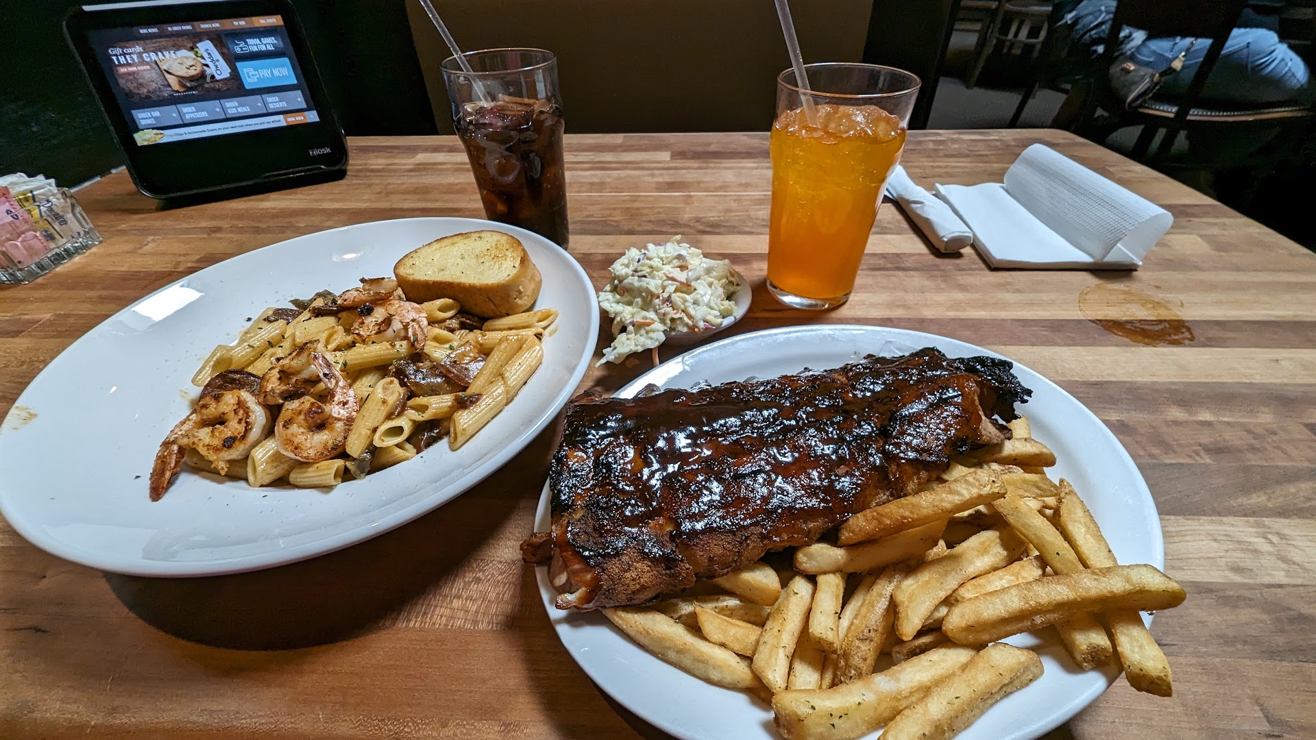 The really frustrating part was the servers feeling obligated to involve the kiosk on the table. It definitely seemed like something they had been told to push, but it was extremely frustrating for us, and ultimately caused the only confusion on splitting the checks, since we couldn't correct items assigned to the wrong person, and there was no way to identify which person ordered what when we put it in the kiosk. I wouldn't mind the kiosk as an option for people who don't want to interact, but let the humans working there do their jobs, and don't force technology into every single meal.