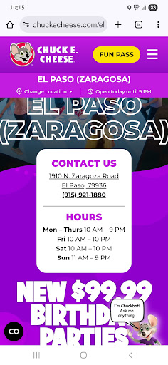 Read moreOverrated and overly expensive. You're better off making your own party or going to a pizza buffet like cicis and get your moneys worth. The salad bar for one person is 10.99 and its a little sorry excuse of a salad bar with nothing but freezer burned lettuce and toppings. I wanted to ask the salad bar cleaner lady about the salad bar but she proceeded to ignore me because she had air pods on. There's not that many drink options either and the fountain drink machine is dirty and looks broken down and unkept, there was even a sign that said the water wasnt working...out of all things water should still be available especially for children, if not the parents responsibilityto bring their own child water. instead, you're forced to give your child sugary syrup carbonated water. Also the design set up for kids' safety is flawed. Instead of having the parents in the back and the play area in the front, the parents should be in the front and kids in the back. I get there's security in front to not let kids leave, but are we really going to trust other people with your kids? No amount of security should allow you to be a lazy parent and not watch after your own child. Anyone can be a preditor. Also, no one is on top of spilled liquids on the floor. Surprisingly there were a lot of elderly people but with those elderly and children, including myself walking all over sticky, syrup melted ice floor water an accident was bound to happen, so I personally asked the cleaner who was more focused on cleaning empty table areas to kindly clean the floor so old people won't break their hips and children don't injure their little bodies. The...