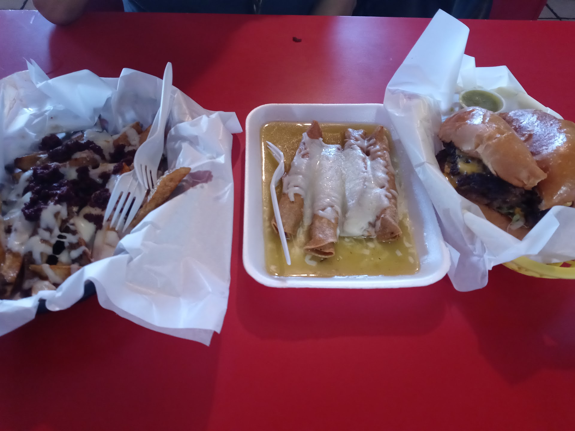 Ā Ā Ā Read moreI was looking forward to this place as a friend had recommended it. Now I think that friend might have playing a practical joke on me. I went with my wife during lunch hour. My first impression was, this place looked like someone's garage with a mild hoarding problem. I decided to look past the appearance and stay optimistic about the food. The guy sat us down and immediately started saying so many things I couldn't even understand what he was saying. Apparently he was telling us what to order. We decided to go with his suggestion of burgers, fries and there tacos. As we waited for the food this guy sat directly in front of us and talked the whole time (mostly about himself). He mentioned several times that this was the best burger we would ever taste. When the food finally came out he was staring at us as we ate. It was so uncomfortable. The food was at best average. The tacos were ok. Nothing special. The burger was actually pretty good 7/10 and the fries not so good. Greasy and tasteless. Overall chuco burger food is ok. However due to personnel issues we will not...
