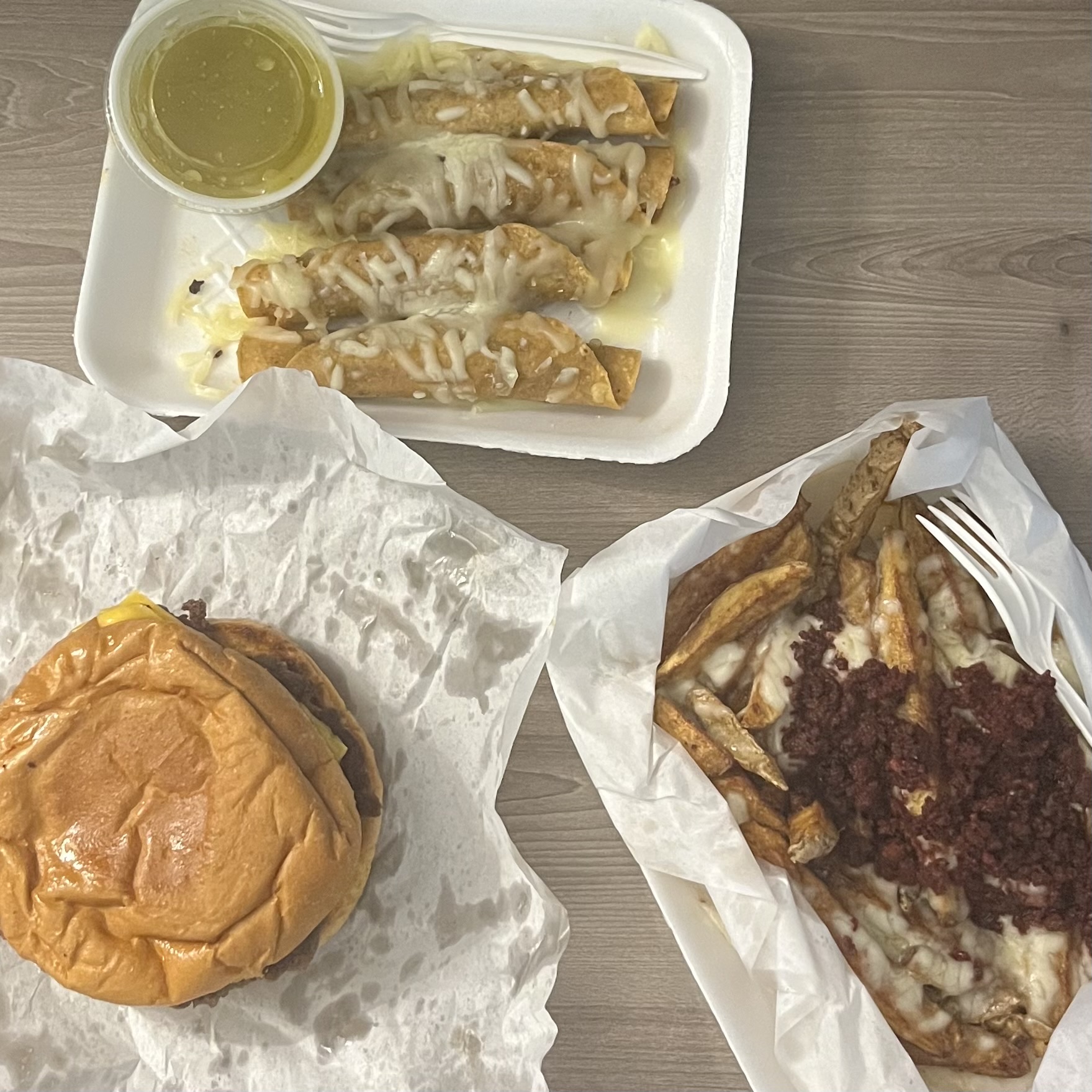 Ā Ā Ā Read moreOK i saw some of the reviews & decided to drop my 2 cents. Yes, the burgers are great. Yes, the facility and menu variety is not typical of the chain places, but honestly, you don't need a large menu when the key items are good and will bring you back. You come to these places for good food and good company. You will never get the attention you get from here at any food chain. The buns are perfect for a good juicy burger. The meat is seasoned just right, and the thick cut tomatoes wrap up the burger so well you will remember this place and want to come back every time. The rolled tacos and green sauce are great and every time I get the chorizo fries. Been meaning to try the dogs but everything I get drawn back to the dable dable burger. The owner will talk about his kick a** burger but he knows they are good and has every right to. However put your phone down and talk to the man and there is more to him than a burger joint. Every time I am in ep I make a point to stop by. Support your local small business and find out there is more to enjoy in the area for food than a cheap and fast burger from a teen that would rather be on his phone and socially awkward and does not know how to talk to a stranger.