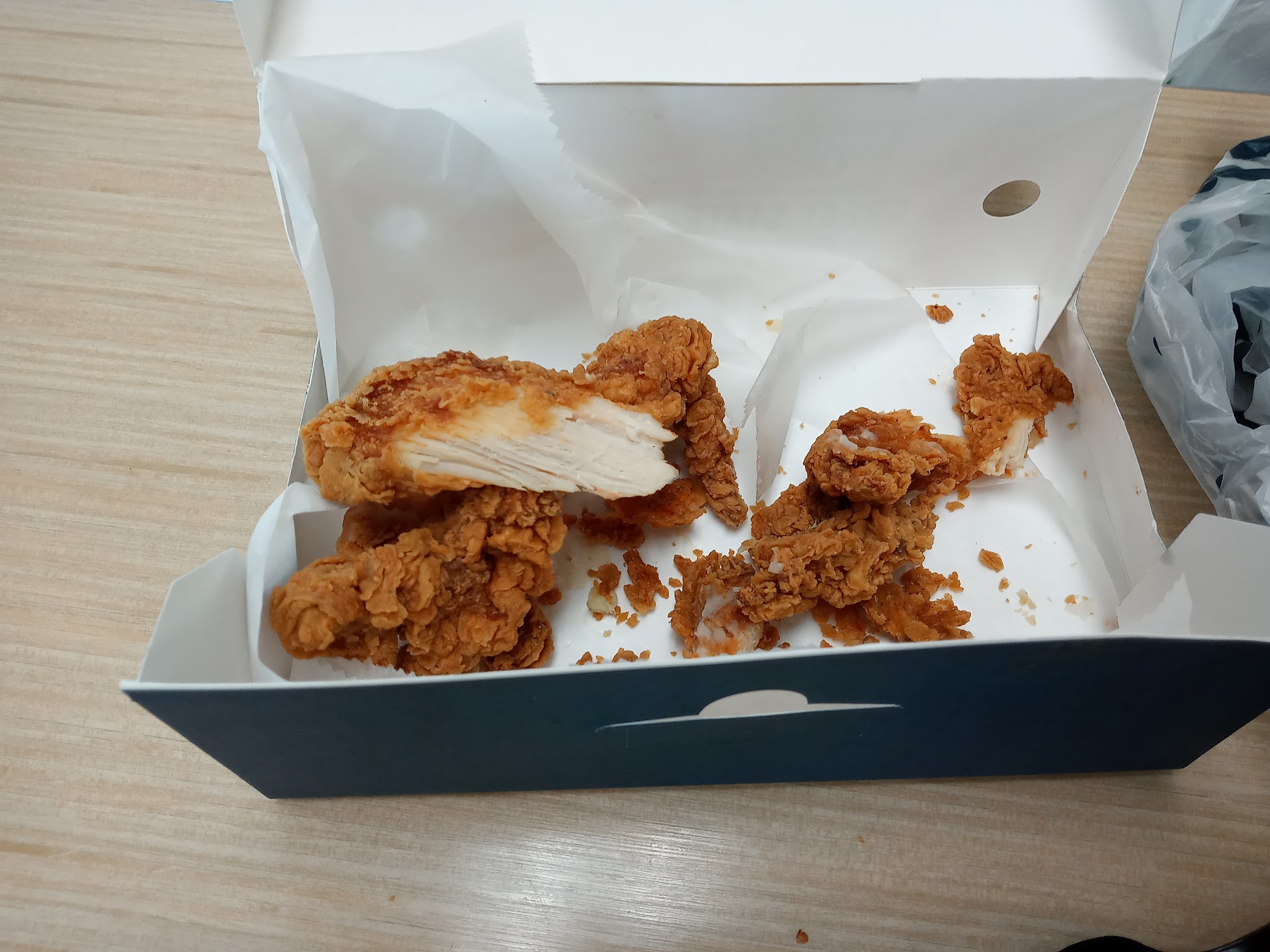 I used to love Church's chicken, but this was a horrible letdown. I should have taken pictures to visualize my disappointment. We went inside to order to go and purchased the 15 piece chicken tenders, 6 jalapeno bombers, and a chicken sandwich. We chose french fries as our side item. I will admit we did not check the bag until we were driving away and realized they had not included the jalapeno bombers, so we turned around and went through the drive-through to request the missing item. The staff fixed the problem without any problem and we drove away. Upon arriving home to eat the food, my first 2 chicken tenders were mainly fried breading and severely dried out chicken. The third I attempted to eat had a bone in it. The jalapeno bombers don't seem to be real cheese and very little jalapeno in them, and I only had one but broke open two more. Needless to say, the chicken tenders and bombers were horrible. The only decent item was the french fries, but my appetite was gone by then and basically spent $45 to throw it in the trash. In the end, the staff was friendly and the service was quick and fixed our issue without a problem so that was nice, but the food was horrible. Will not be going...