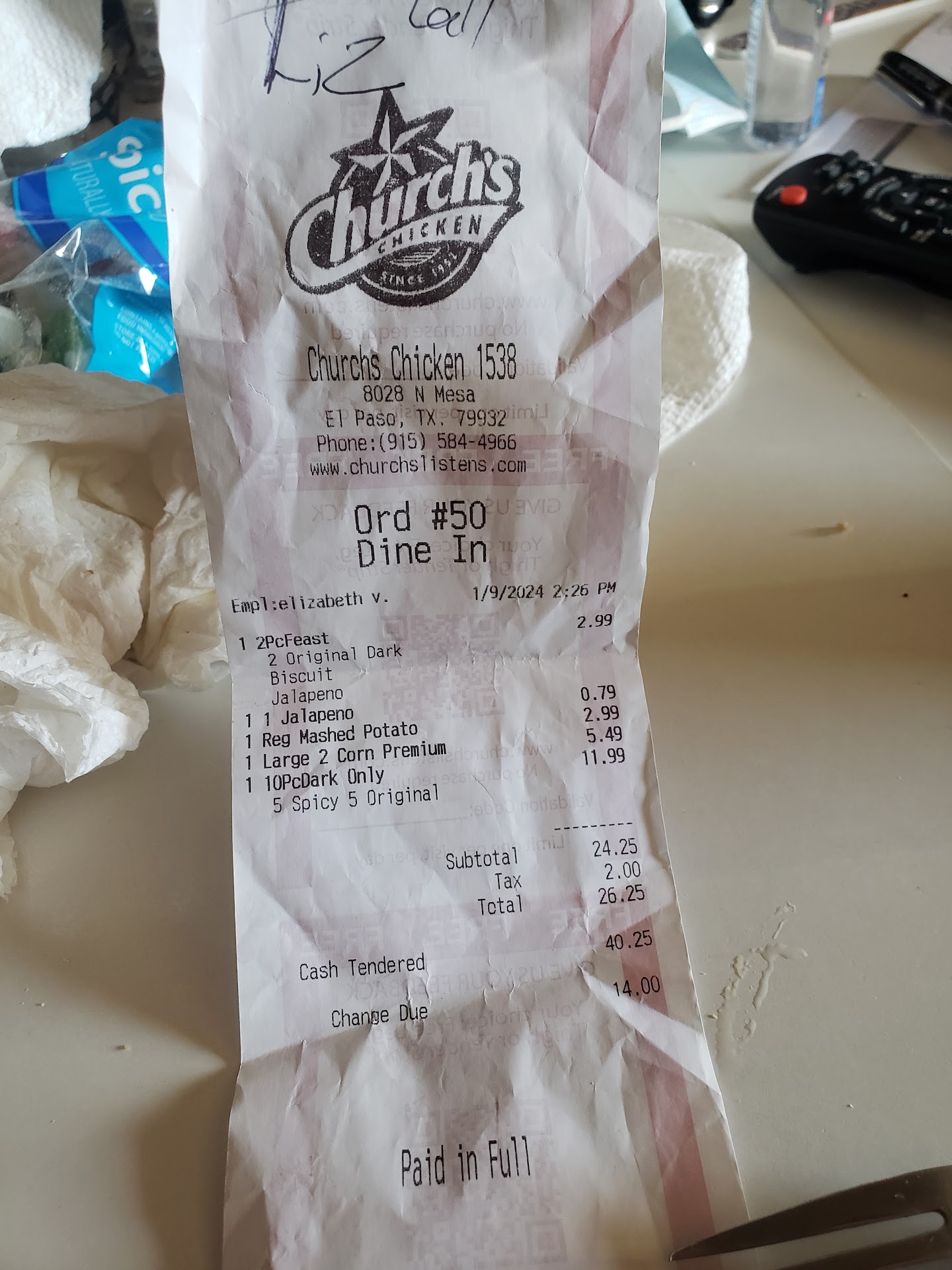 So we wanted some chicken you can’t go wrong with churches chicken.. some reason this particular location usually has the worst service. It’s not the first time nor the second time. They didn’t get our order right. Chicken was good so that’s good. The cole slaw was bad foul smelled when you opened the lid. Looked like it was sitting there cabbage even had a brown colored. Old cabbage from a bag. When we tried getting the cashiers attention she was on her phone we even honked once and didn’t bother to look up. The other employees were chit chatting. Nothing wrong with a few words with employees about work or what not but when a customer is out there please acknowledge your customer. All we wanted was honey. The biscuits weren’t fresh a bit hard. I assumed sitting in the light. We wanted to give this location another shot from our previous times we visited. It wasn’t busy but it wasn’t dead steady drive thru. They can just double check food and acknowledge...