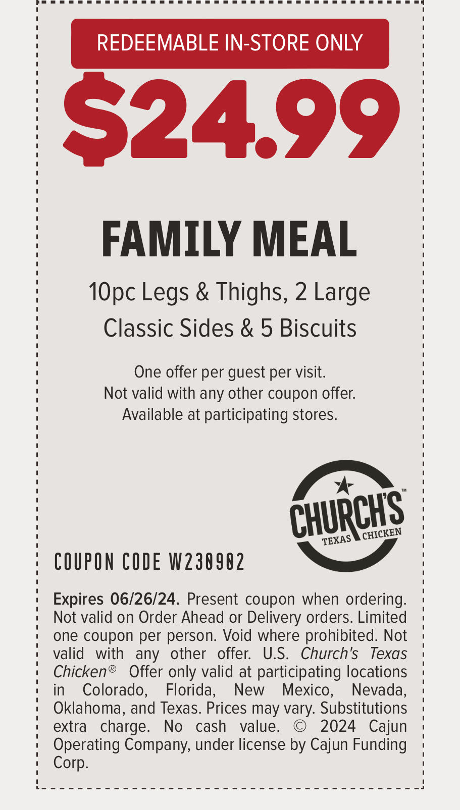 So we wanted some chicken you canât go wrong with churches chicken.. some reason this particular location usually has the worst service. Itâs not the first time nor the second time. They didnât get our order right. Chicken was good so thatâs good. The cole slaw was bad foul smelled when you opened the lid. Looked like it was sitting there cabbage even had a brown colored. Old cabbage from a bag. When we tried getting the cashiers attention she was on her phone we even honked once and didnât bother to look up. The other employees were chit chatting. Nothing wrong with a few words with employees about work or what not but when a customer is out there please acknowledge your customer. All we wanted was honey. The biscuits werenât fresh a bit hard. I assumed sitting in the light. We wanted to give this location another shot from our previous times we visited. It wasnât busy but it wasnât dead steady drive thru. They can just double check food and acknowledge...