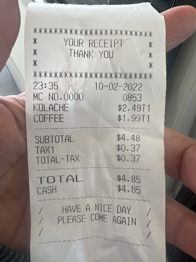 Read moreHORRIBLE HORRIBLE experience, the girl cashier morenita with glasses kept rubbing her nose and scratching her nose while I was ordering. I asked for certain items they were out, I ended up buying a regular kolache and âbigâ coffee. The coffee was not freshed, she did not wash her hands, she grabbed the food with her bare hands, I asked for for 6 creams and 6 sugars she did not do it, I asked her again she ignored me. She was confused the whole time. The kolache was warm on the outside but the sausage was cold on the inside. I kept calling the store they wouldnât answer. I want the store manager...