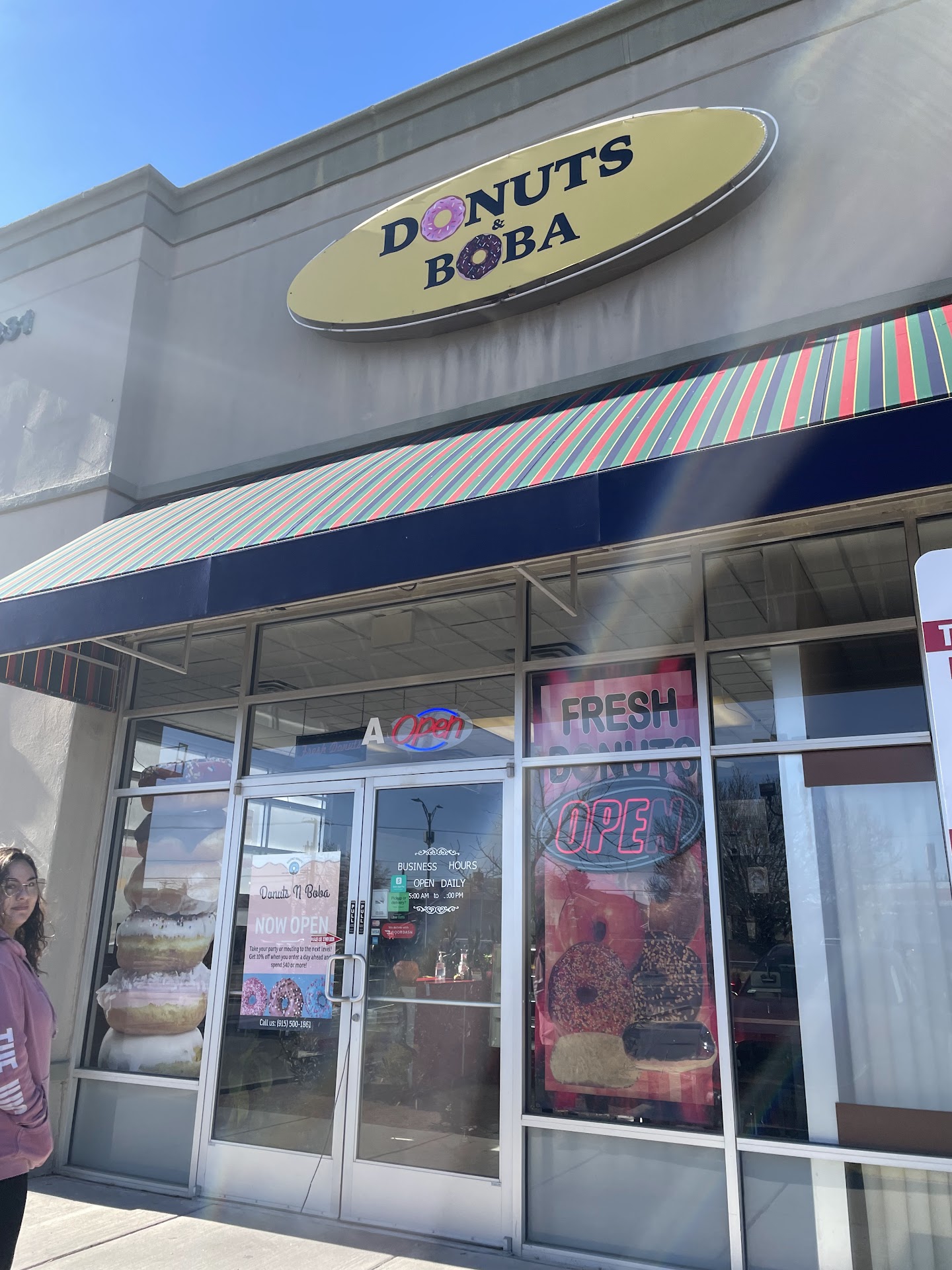First time here and we loved it! Cozy little bakery with a café-feel. The family that owns this place also works there. They were very nice, welcoming and attentive to my family while ordering inside from the counter, AND to their drive-thru patrons. Yes! They have a convenient drive-thru and they open at 5AM!!! We ordered a half-dozen kolaches (half regular, half spicy jalapeño) and only 2 made it home (don't forget the Mustard). The kolaches were super fresh, with warm batches coming out of the oven regularly... but they were nice enough to warm some up for us before our drive home. Donuts N Boba has some fun donuts to choose from too. We took a half-dozen donuts home, which consisted of Fruity Pebbles donuts, coconut and a single maple-bacon long John (strip of bacon on top). To drink we had a Boba Caramel Iced Coffee with extra Caramel (which I chugged), and a pineapple frap with strawberry popping pearls for our 7 year old (who absolutely loved it!). Overall, our donuts, kolaches and drinks were absolutely delicious! Yes, I'm like you...I enjoy Starbucks and Dutch Bros and Krispy Kreme Donuts, but do yourself a favor and switch up the routine. Go visit a local, family owned business that serves FRESH quality treats, instead of waiting in line at a hyped-up franchise! I will definitely be going back to Donuts N Boba!