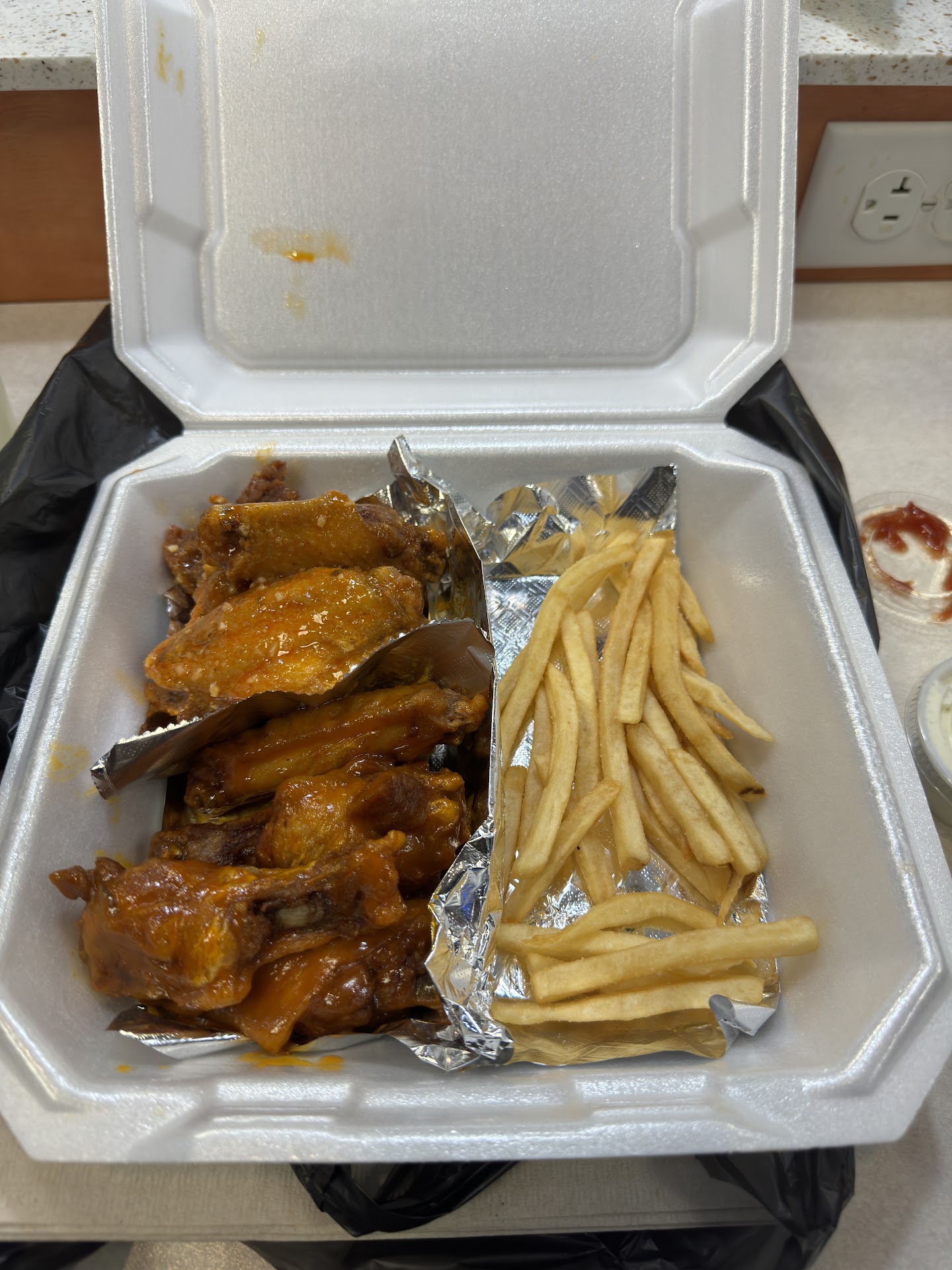 Read moreIf I could give 0 stars I would. I ordered at 1:02 on Dec 23 2024 . I ordered 10 wings with a side of celery and 2 ranches. We got helped by a man on the other register, we were the only people he took on that specific register.he took our order and we waited for our food, we skipped 5 times. We waitied 20 minutes before I decided to go up and ask about our order and the guy didn’t aknowlege I was even there. He called out the numbers as usual and when he was done instead of asking what I needed he walked away as if I wasn’t there. So I went up to ask the man who took our order. He read the receipt as if he didn’t know what we ordered. Right there I probably should’ve just asked for a refund. He went back sauced up our wings, and didn’t give us our side of celery or a tray or ranch. So I went back up and asked for our side of celery and it was 4 tiny ass celery sticks. IF I COULD GIVE 0 stars I would. A big waste of my time and a waste of my money. Never coming back nor would I ever reccomend this...