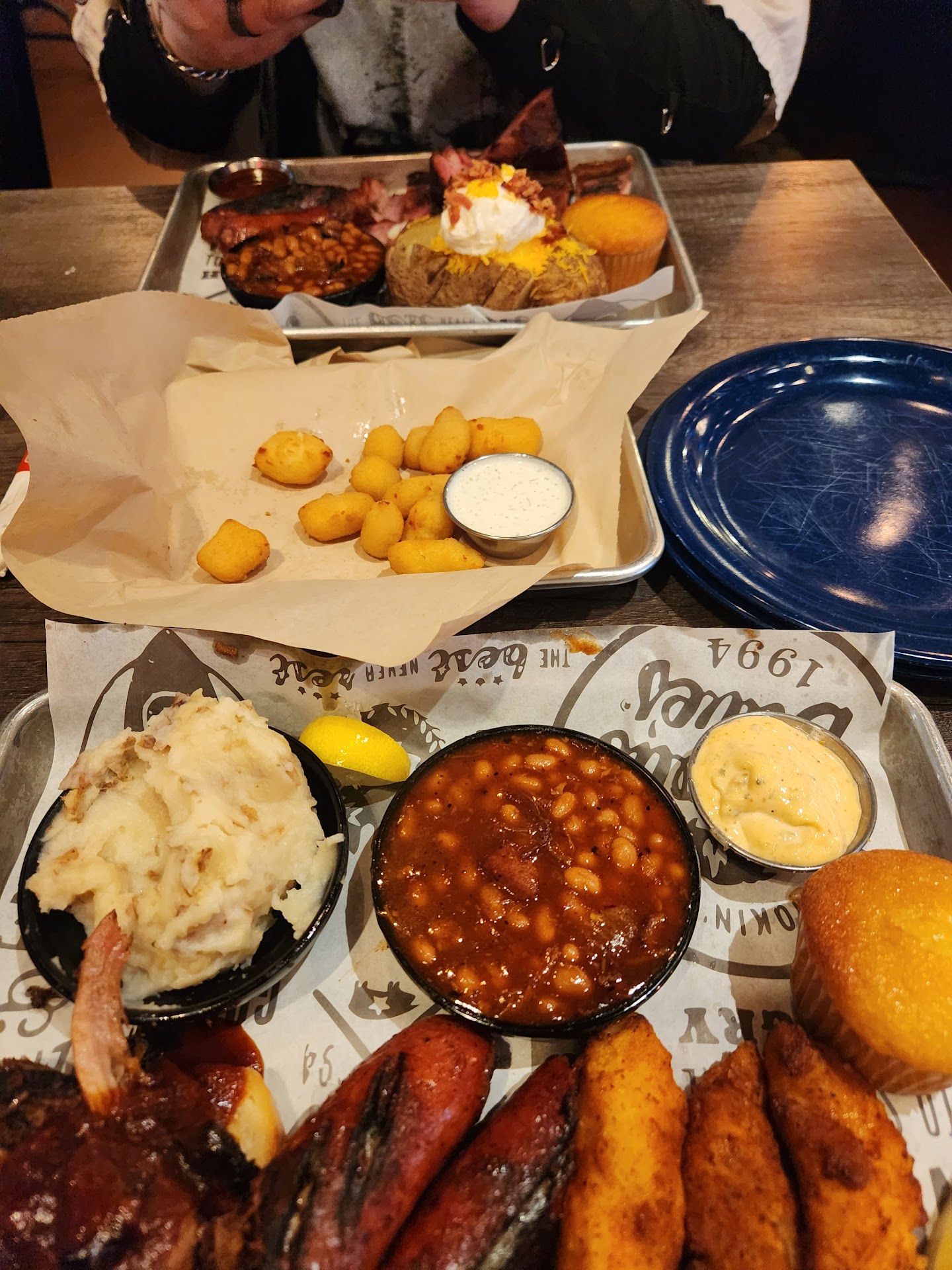 Read moreThis place has been a family favorite restaurant to us for, many years now. We usually come together here for those "special occasions" or reunions of sorts. This visit was for Bobby, who came in from out of town. We are loyal to Famous Dave's Restaurant, because of their family style platters, these are so practical and satisfying. This platter would easily serve 4-6 people, more or less, depending if "the weird uncle" shows up. For these larger parties, they seat you in a semi-private room with a fireplace.
