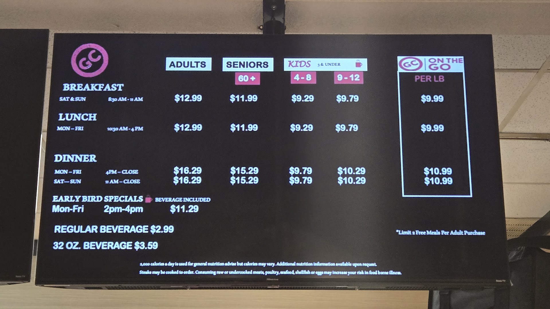 I would love to stay eat here is for the price but here again it fails. Our last dinner here was more than most casual places and does not tip favor for value. This brings the question - with food options that suck and a picture ice higher than most decent places, what market exactly is Golden...