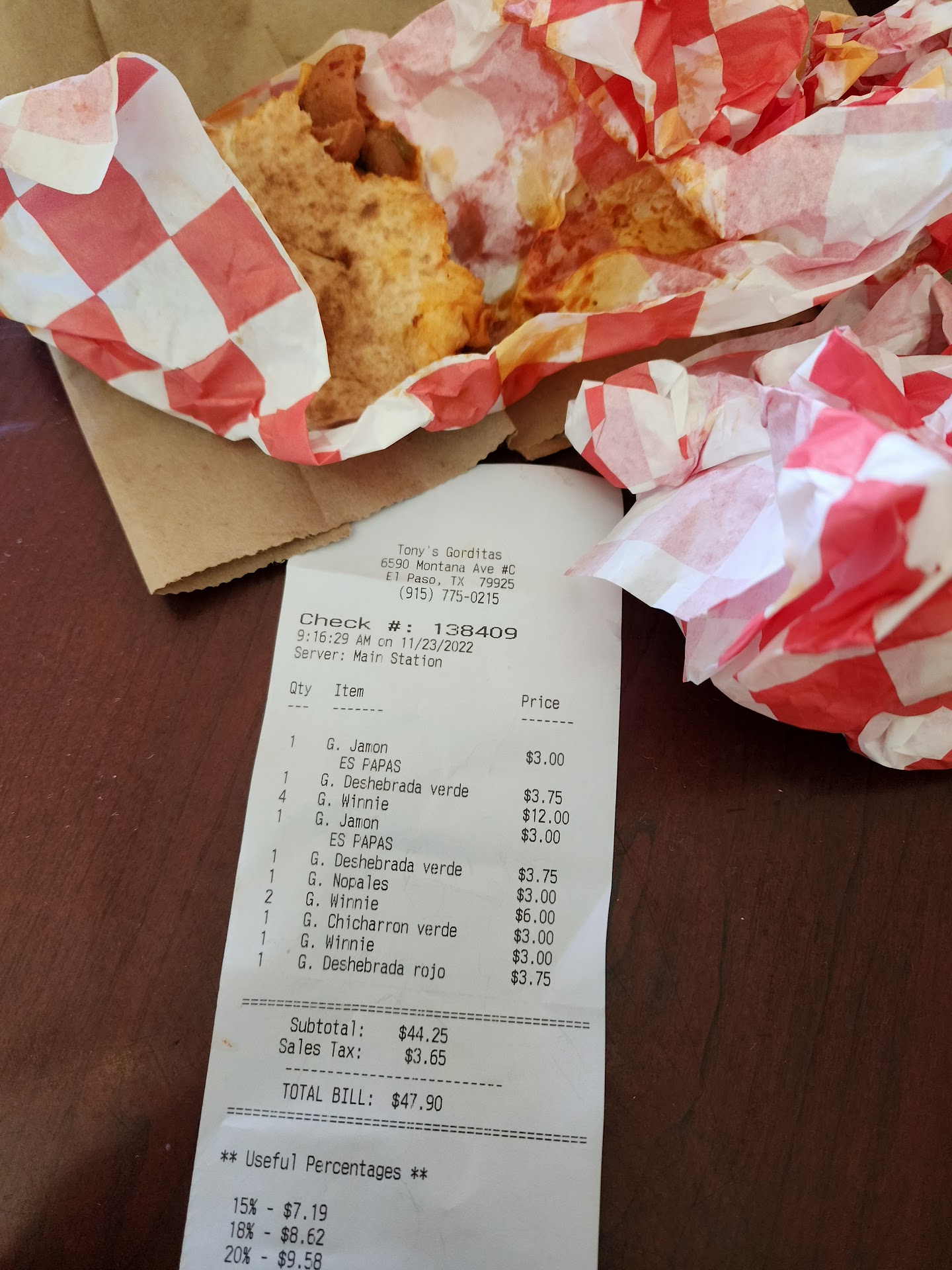 Read morePositive Points Large portions Variety of options: Tried two different gordita options, which suggests that the restaurant offers a range of menu items.