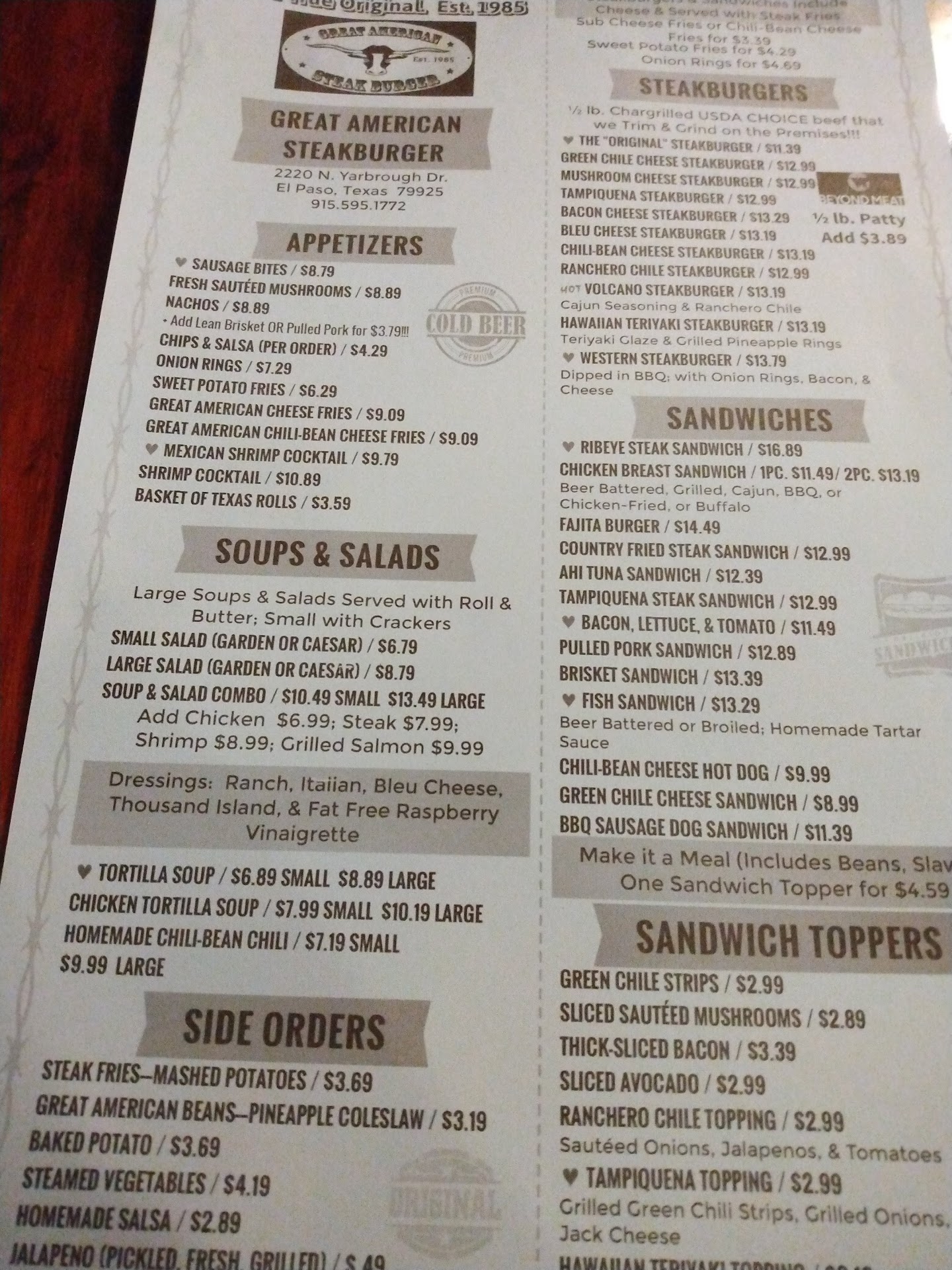 Read moreWent to Great American on Yarborough and had the worst time spending my father’s birthday. Yes, we showed up at 7:30pm when they close at 8, however, we were specifically told when we asked if it’s to late that “no it’s fine.” From the start our server was rude , bothered that she was seated and made several comments out loud to the back that “I still has two tables” also later said aloud “their leaving,” when were just finishing up. We were never greeted, she took our order in a rush, never checked on us, my ribeye steak sandwich was scrap fat(I ate less than half of my sandwich that was the only decent part, I ate only fries)I ordered it medium and it was rare, I had to ask for refills, because she was too busy cleaning up in a hurry and turning off the tv. We literally all felt uncomfortable and rushed and didn’t feel welcomed one bit. We left the restaurant at 8:30pm showing up at 7:30pm , which means 1 hour minus the 20 minutes for our food to come out left us all eating in 40 minutes RUSHED! We weren’t thanked just asked “all together or separate”? And left the receipt. When paying in the front she was there and talking out loud infront of us asking the bus boy are you tired? We left and no thank you other than by the girl who charged us. I’m not one to complain, but I’ve been here so many times and this is by far the worst choice to spend a birthday. Not worth the price and saddens me that a birthday was not enjoyable because of our service...