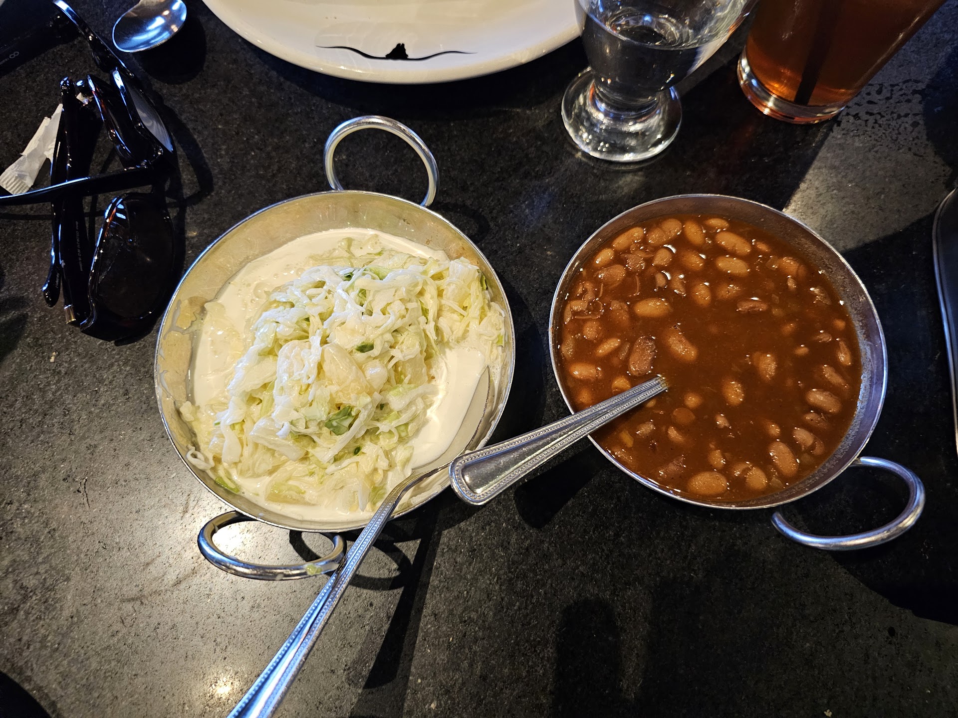 Mashed potatoes had good flavor and were definitely fresh. They paired well with the steak. The coleslaw was also fresh and a little sweet. Seemed very authentic (I am not a big coleslaw guy but my wife really enjoyed it). Baked beans were a highlight, as is a running theme, they were fresh and the sauce had a little spice that gave them a good kick.