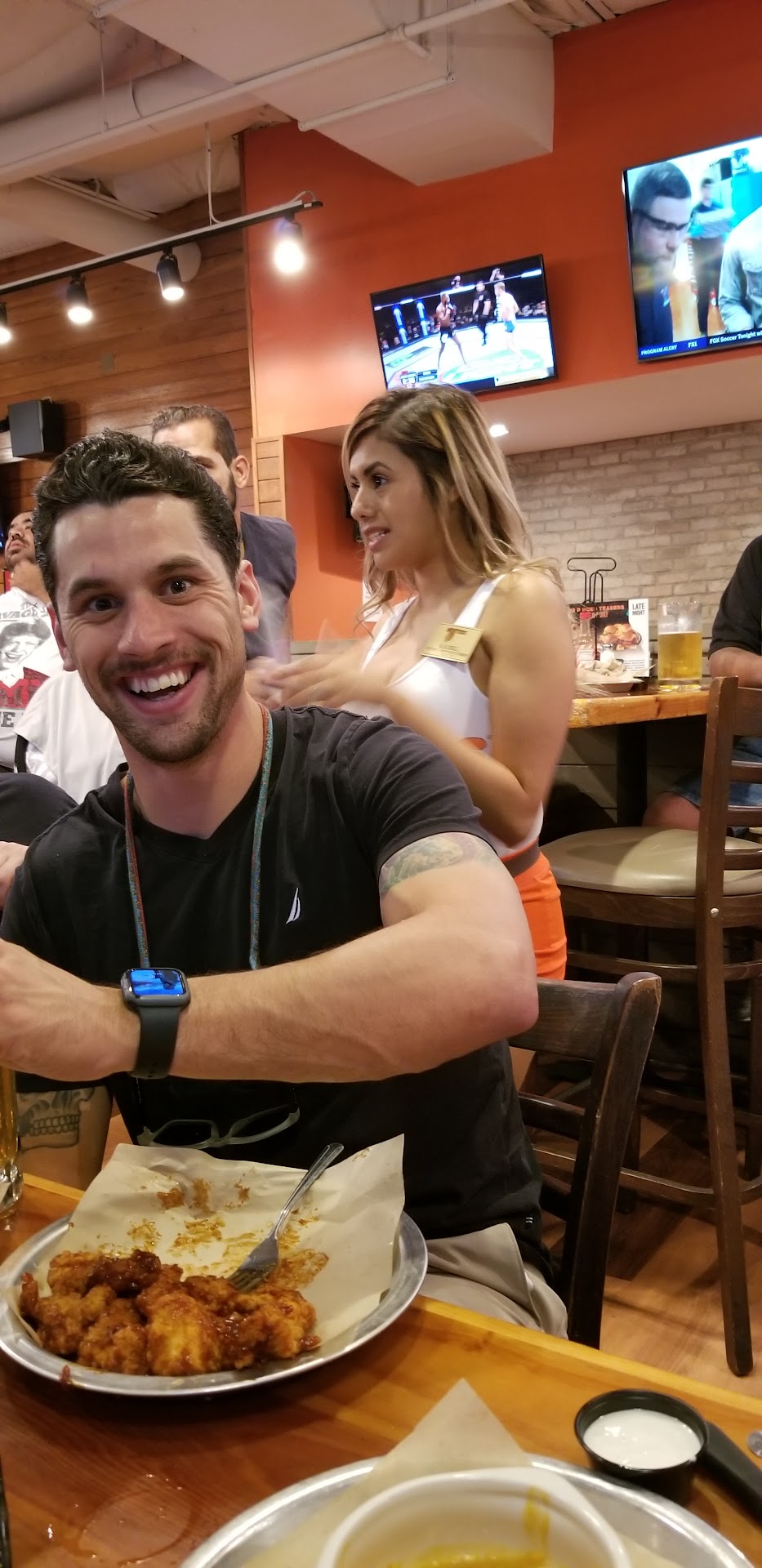 Our waitress, I belive her name was Charlotte or charlene, was one of the worst I've had in a long time. It was notably apparent that none of the girls were happy about working there. Not a single one really smiled, they all looked miserable and pissed off, which might explain why they were so rude and inattentive. Our server, came right to our table, which was nice, but she could hardly be heard when she spoke. Okay, fine, no big deal. She didn't really give us a whole lot of time to figure out what we wanted, so, feeling rushed she had already asked us three timed if we were ready to order in a span of about 5 minutes, I just told my husband I would pick at the appetizers he ordered. I was starting to get annoyed at this point. This, to me, was not proper service and though I may be more critical than most due to my experience, it doesn't take a genius to see that there were serious problems with this particular hooters.