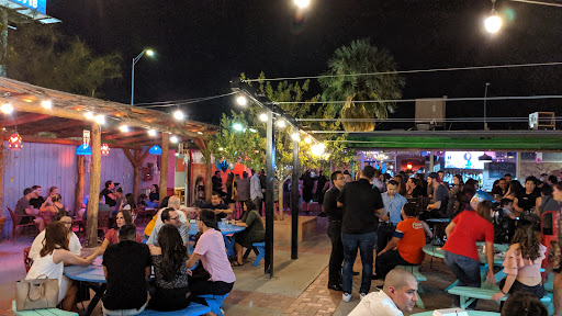 Food was a hit or miss but overall good. The hummus tasted house-made and the fish tacos were good but not something I would get again. The chicken tacos are so spicy they were virtually inedible by anyone that has any taste buds remaining. My friends said that the pork tacos and the house nachos were very good
