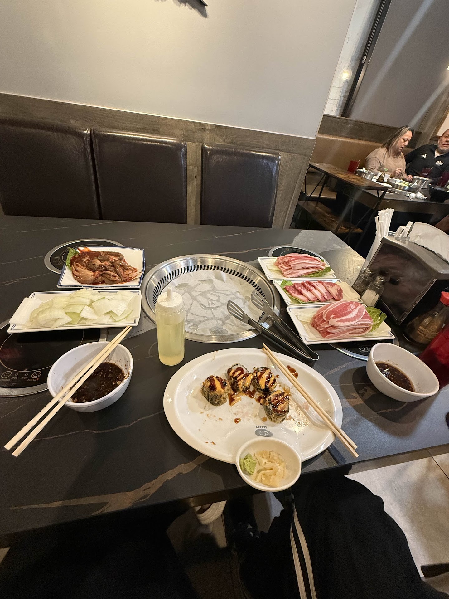 I have NEVER written a bad review before but people need to be aware of this restaurant. I have been a customer at this restaurant since I moved to El Paso a year ago and my husband and I loved the food and the service. During my most recent visit, I had a VERY terrible experience. When we walked in our server approached us to seat us and we told him we would like to be seated at a table with a Korean BBQ grill since we knew that we were going to eat the KBBQ and he left without seating us or saying anything to us. We were standing and waiting to be seated for 15 minutes while our server tended to other tables and ignored us until someone from the back approached us and we told him the same thing we told the server and he had us sit at another table while they cleaned one with a grill. We were very confused because this had never happened before in our previous 5-10 visits. When we sat at our new table the server came with our menus but failed to give us the one with the Korean BBQ items when we told him already we were going to be having that. We had to flag him down after waiting for 10-15 minutes for him to come back to receive the menus. After we ordered, everything was fine until our order of meats started coming out. The table they sat us at had no griddle to cook the meat on and we waited over 40 minutes for them to bring one out and turn the fire on. The server didn't check on us and would just drop off the order and leave without giving us the chance to ask for the griddle. The man who helped seat us also came out with some orders and asked us how everything was when we FINALLY could ask for a griddle to cook on. At this point, I was extremely disappointed by our service and just wanted to eat and leave which is what we did. We packed up our leftovers and left as soon as we were done. An hour after we ate there my husband and I started having severe food poisoning symptoms. Today my husband tried to call the restaurant to inform them about the food poisoning and didn't speak a word about the service and was hung up on twice. I called the restaurant on my phone and was livid at this point that this was even happening and was told to call back tomorrow when they aren't "busy". I used to love this place but this experience has extremely altered my view of it and I don't think I will...