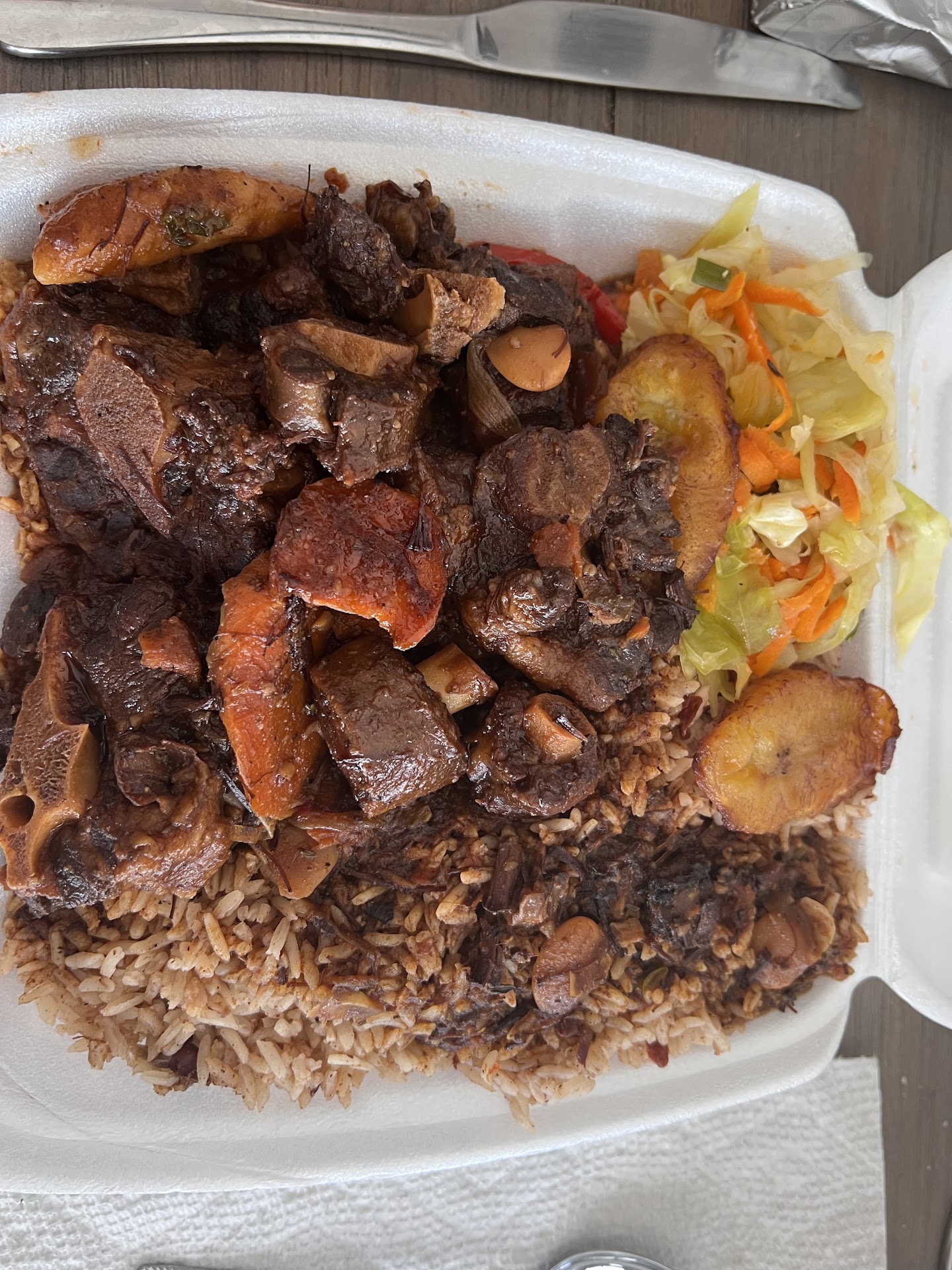 Read moreFood was delicious. Customer service was great. Walked in close too closing not knowing. Two women greated us with a smile not even mentioning closing time was like in 15miniutes. I got the curry goat with the rice and the red beans and cabbage!!!! So delicious. My friend got the oxtails with same sides. Food took about 15min which is fine 🙂 👍 prices were fair 👌 lastly we get our delicious smelling food. The women at the counter also mentioned they had deserts so I got a cheesecake. After paying I noticed the time and said I'm sorry didn't realize it was so late and yall were gonna close already! Women smiled and said enjoy you're food and have a great night. Walked out and tore my food up in the car. Wooooooow. I will be back so delicious and the staff alone with their welcoming vibe will have me returning too try the rest of the delicious fooood🫡 sorry didn't get a picture food...