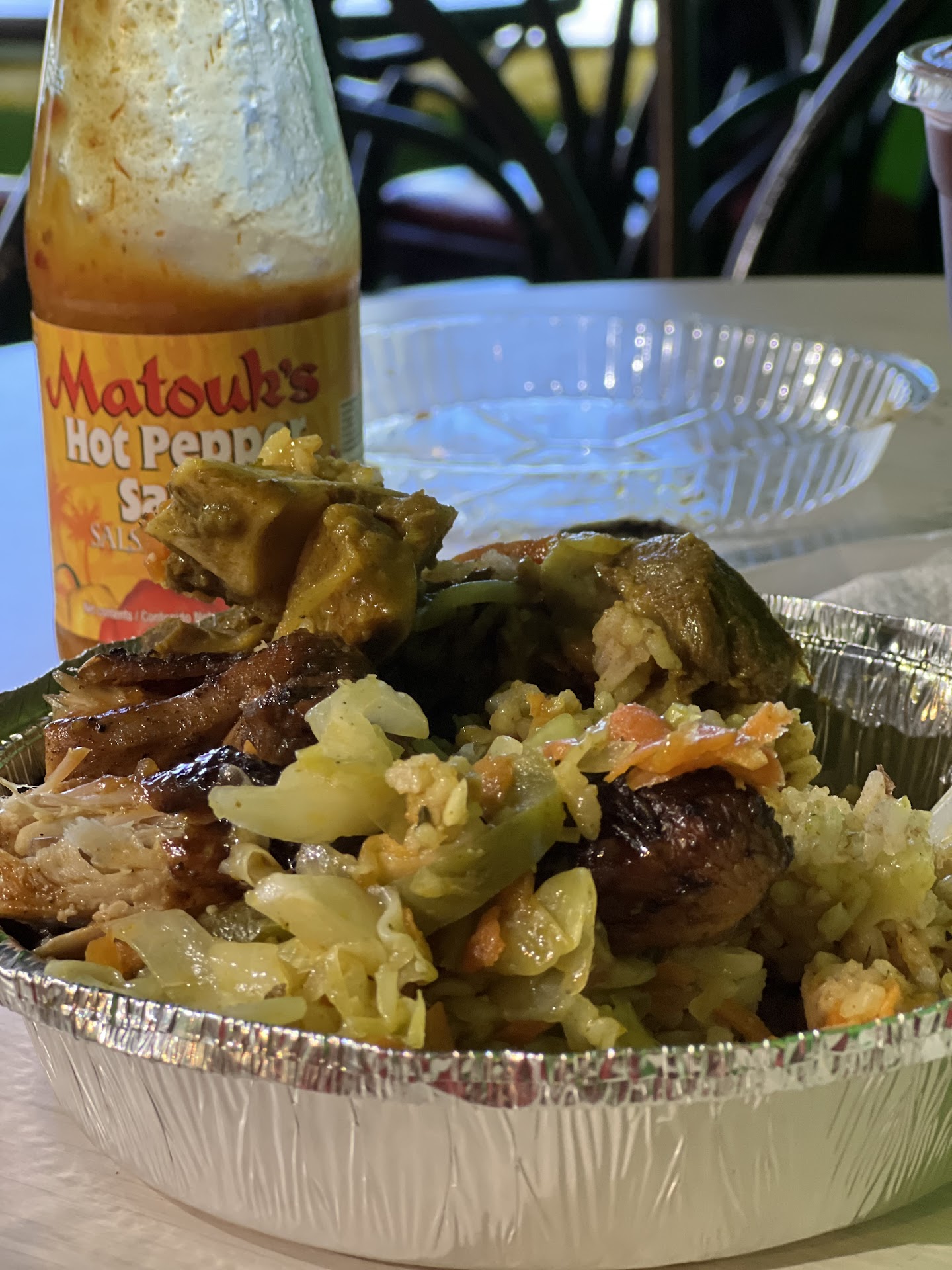 Was driving on Dyer and was hungry and saw this place. It looked local so I wanted to support them and also wanted to try the jerk chicken. Walked in and there were 2 young ladies by the register. I sat down and was instructed to order at the register. I requested a recommendation and was told the oxtail was their favorite dish. I ordered a combo oxtail and jerk chicken. I asked for water and was brought a bottled water. They don't serve tap water. Bill was $33 total. I know oxtail is on the expensive side so I went ahead and paid. I sat down and after a few minutes was brought an aluminum take out dish with clear plastic cover. Not a big problem as I thought I could take the leftovers if I didn't finish it. I opened it up and saw small oxtails and chicken which did not appear to be freshly made. The meat was served over a bed of sautƩed cabbage and rice. I was served 3 small oxtails which were on the dry side and it definately was reheated from day(s) before. Same with the chicken as I was given a dried up drum stick and half a thigh. Half of the drum stick was still on the cold side. It wasn't reheated correctly. It wasn't all bad as the food did taste pretty good. Now imagine freshly made and it would easily be delicious. To those that have had it freshly made, you had probably delicious food. Some of the pics show freshly made food from what I can see. I know reheated food when I eat it and aside from the rice and sautƩed cabbage, the meat was not freshly made. The girls didn not once ask me how the meal was or if I needed anything. They sat by the register on their cell phones the whole time I was there. I cleaned up after myself and threw the leftover rice and cabbage away before I left. I'm hoping the owner reads this message and corrects the issues. Kudos to the cook as the food is good even as leftovers. $33 for this meal was not worth it by any means. I still felt bad for the girls and left $3...
