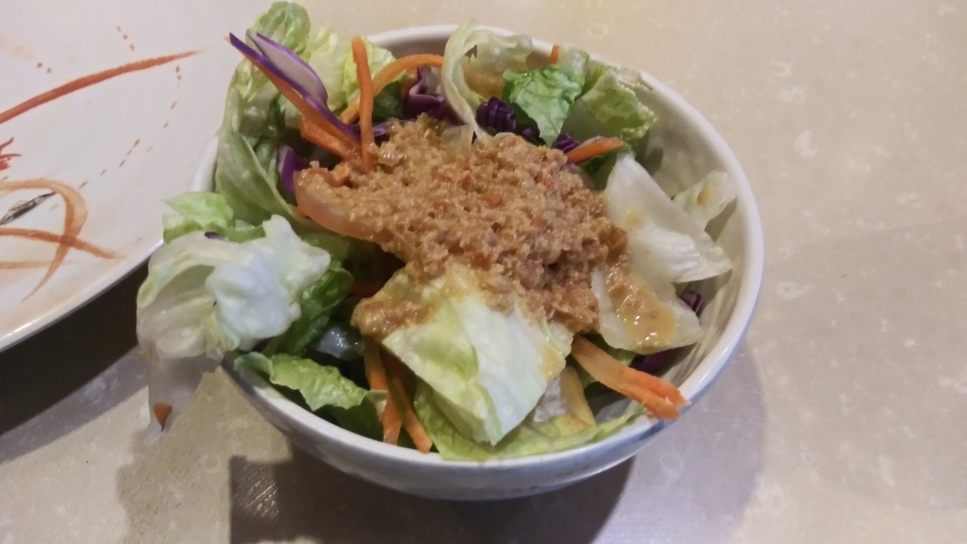 The restaurant serves soup and salad as part of your entree. I am not sure if it was supposed to be Miso soup (see photo provided), but the broth was too clear and didn't taste like Miso soup. It was rather bland this time.