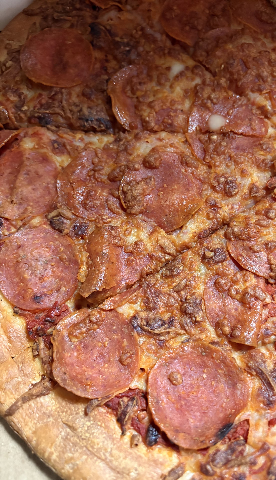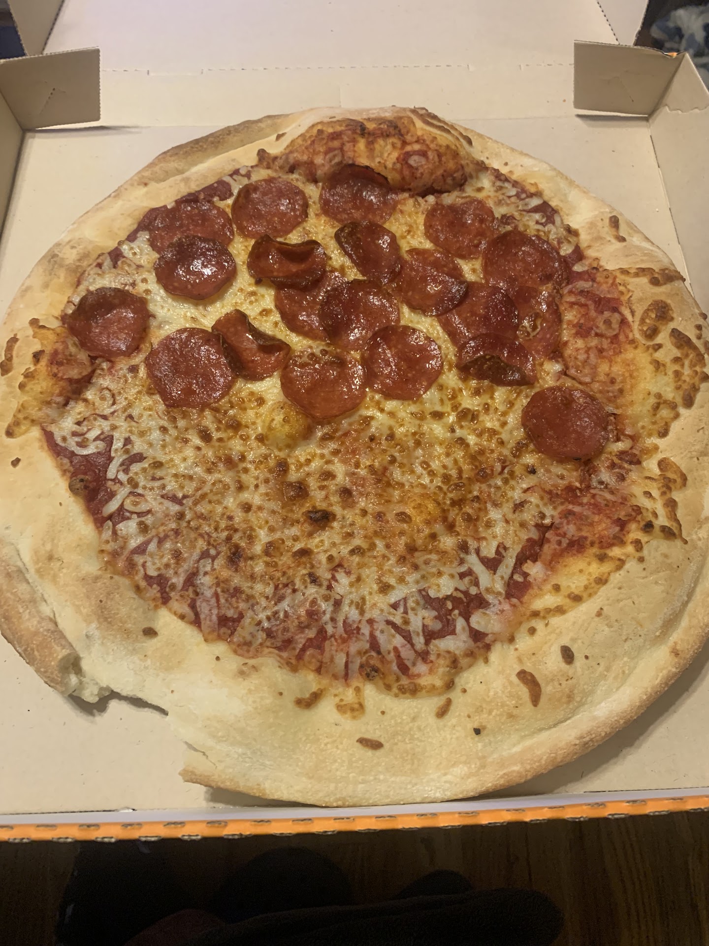 Ā Ā Ā Read moreShowed up to pick up a pepperoni pizza and I see a male employee sitting on a prep table on his phone. That was my first cue to just leave. We got our pizza and took it home to find it to be burned, but still warm. We tried a slice each, but there was no way we could have finished it. The crazy bread was all undercooked dough, but we had 2 sticks each. Nonetheless, woke up 6-7 hours later to bouts of food poisoning.