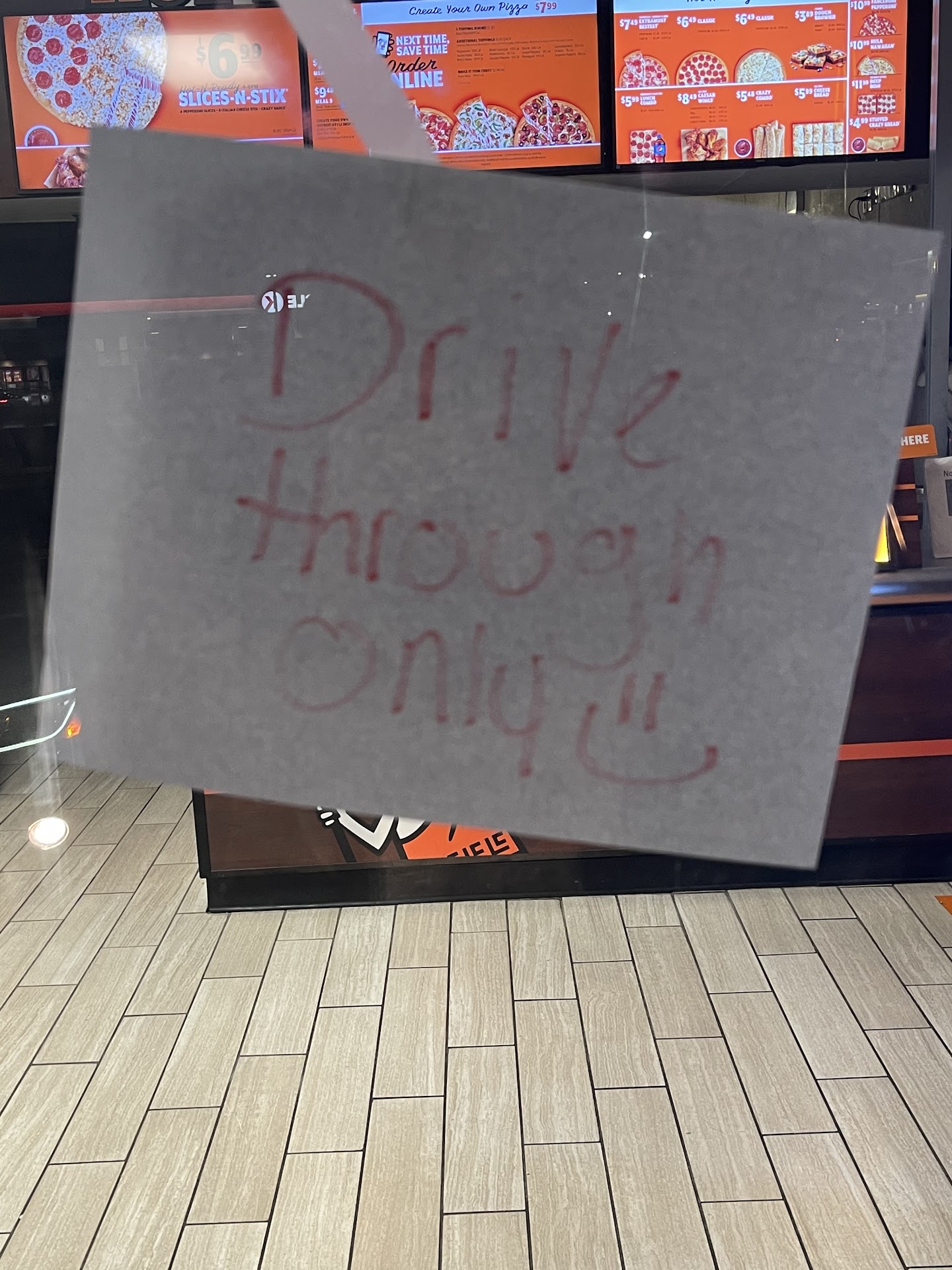 Maybe if the employees were not potentially cross-contaminating food contact surfaces, we would have been spared the illness. Maybe if the pizza was actually tracked from preparation time and had a use by time that was properly followed, we would have been spared from illness too. I am an above store leader within the restaurant industry myself and food safety and sanitation practices of a restaurant are absolutely paramount as they should be above all else. This locationās evening crew could clearly care...
