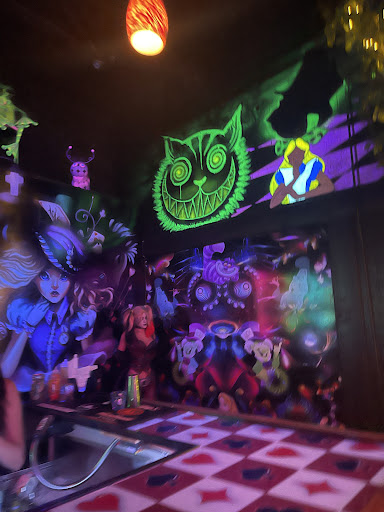 This place is amazing. I love Alice in wonderland and this bar is everything Alice. They have drinks with names that match the movies. I had one of each and some were strong and some were delicious. The best ones were queen of hearts, absolum and unbirthday cake martini. You have to get there early to try these unfortunately they stop serving these after 10pm. Itâs a nice vibe, the tables are very cool looking and the outside patio is nice to sit and talk and enjoy some drinks. On Saturday they had karaoke which is really cool. But everything down to the detail is Alice in wonderland. Definitely one of...