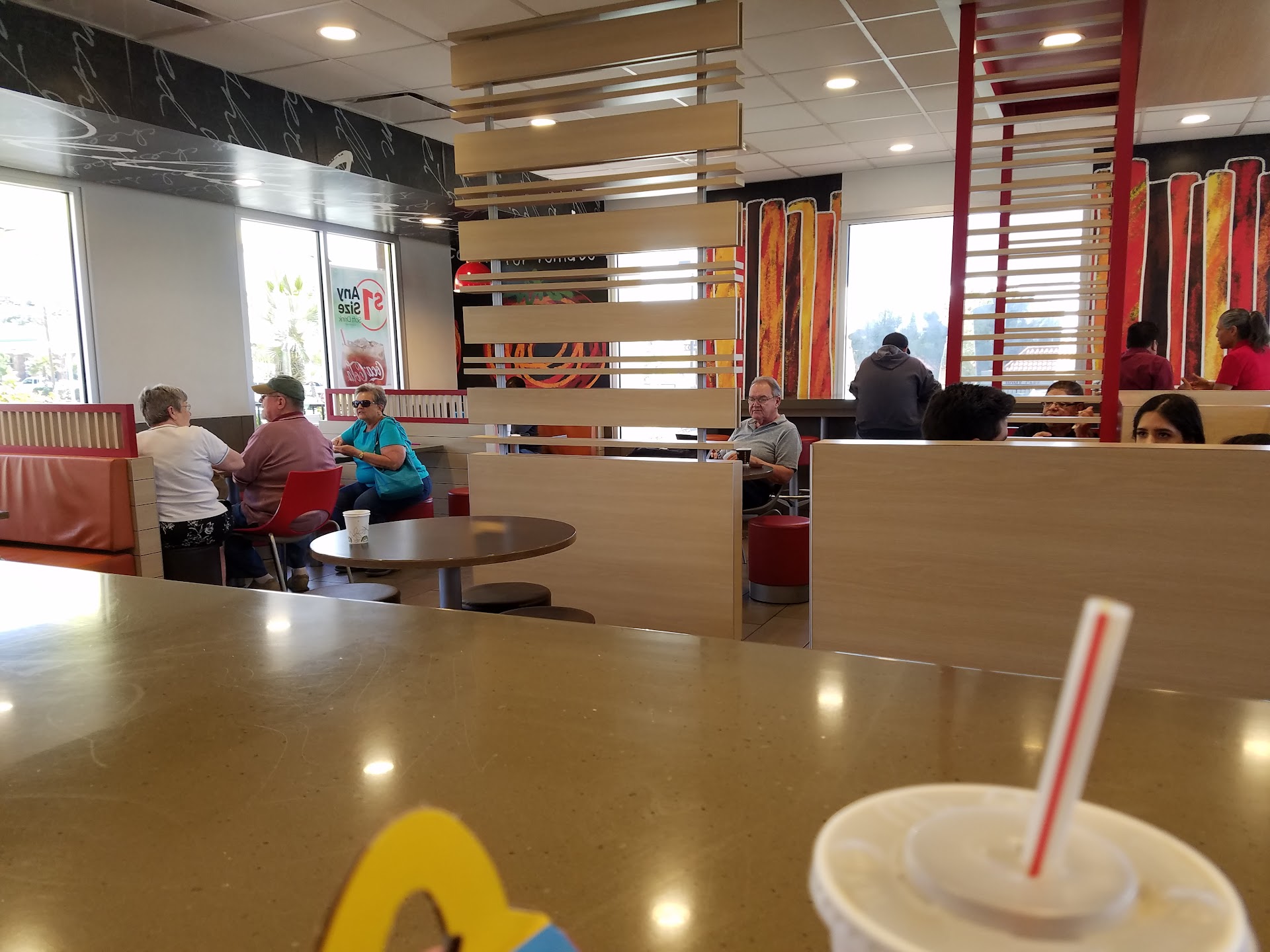 Read moreAbsolutely horrible customer service, and zero regard for the fecal like smell when you walk in. The restaurant smelled intensely bad that my toddler even gagged. It hit me like a truck as soon as I walked in the door. As for the service, I was the only one at the register and the restaurant was fairly empty with about 5 customers. Yet no one helped me for a good 10 minutes. Staff in the kitchen were looking at me and the manager even saw me but still no one came to take my order of one lemonade. Finally, when someone did come to help me, he was not sociable at all and did not provide a straw for the drink. I thought oh okay maybe the straws are by the fountain drinks! But there were none. I walked around trying to find a straw (the drink was for my toddler) and there was nothing. I lost faith to wait in line again just to ask for a straw so I finally just left the foul smelling place. I either recommend drive thru or not going to this particular...