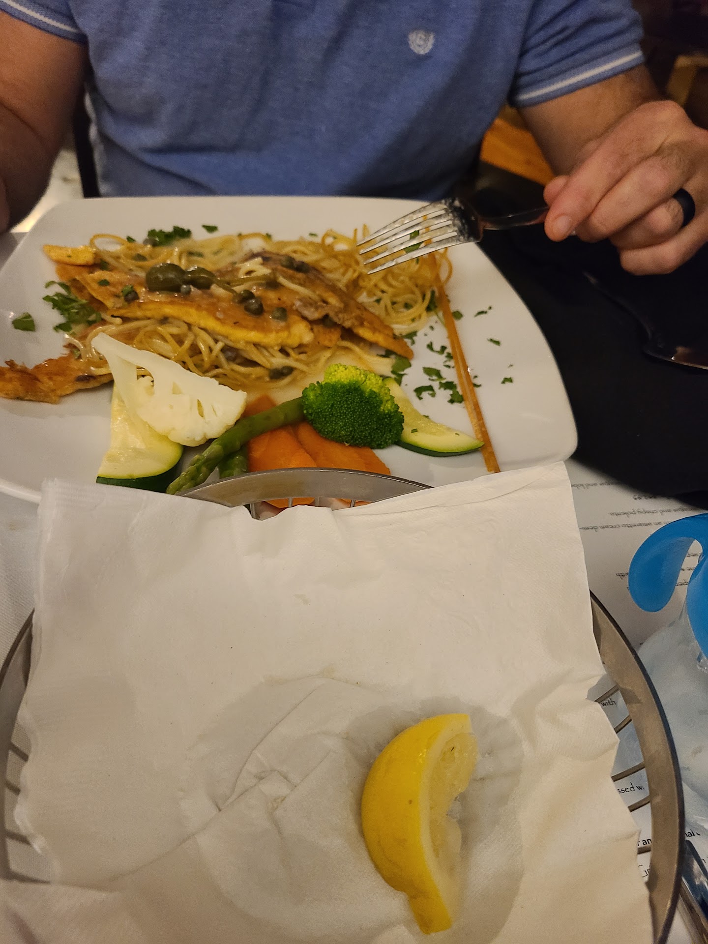 The food was so fresh and the meats in the dishes my husband and I ordered was incredibly tender. It was the first time I had ever tired veal, and this was an absolutely great first time experience! The bread, olive oil and balsamic vinegar that came out before our meal to snack on was tasty and fresh. We ordered the Bruschetta al Pomodoro for an appetizer, and it was one of the best appetizers we have ever had! Both of our main courses were made to order (I had to substitute a sauce in my main dish, and that was followed, thank you to our waiter Alex!) and we had enough room to have a surprise birthday dessert!!