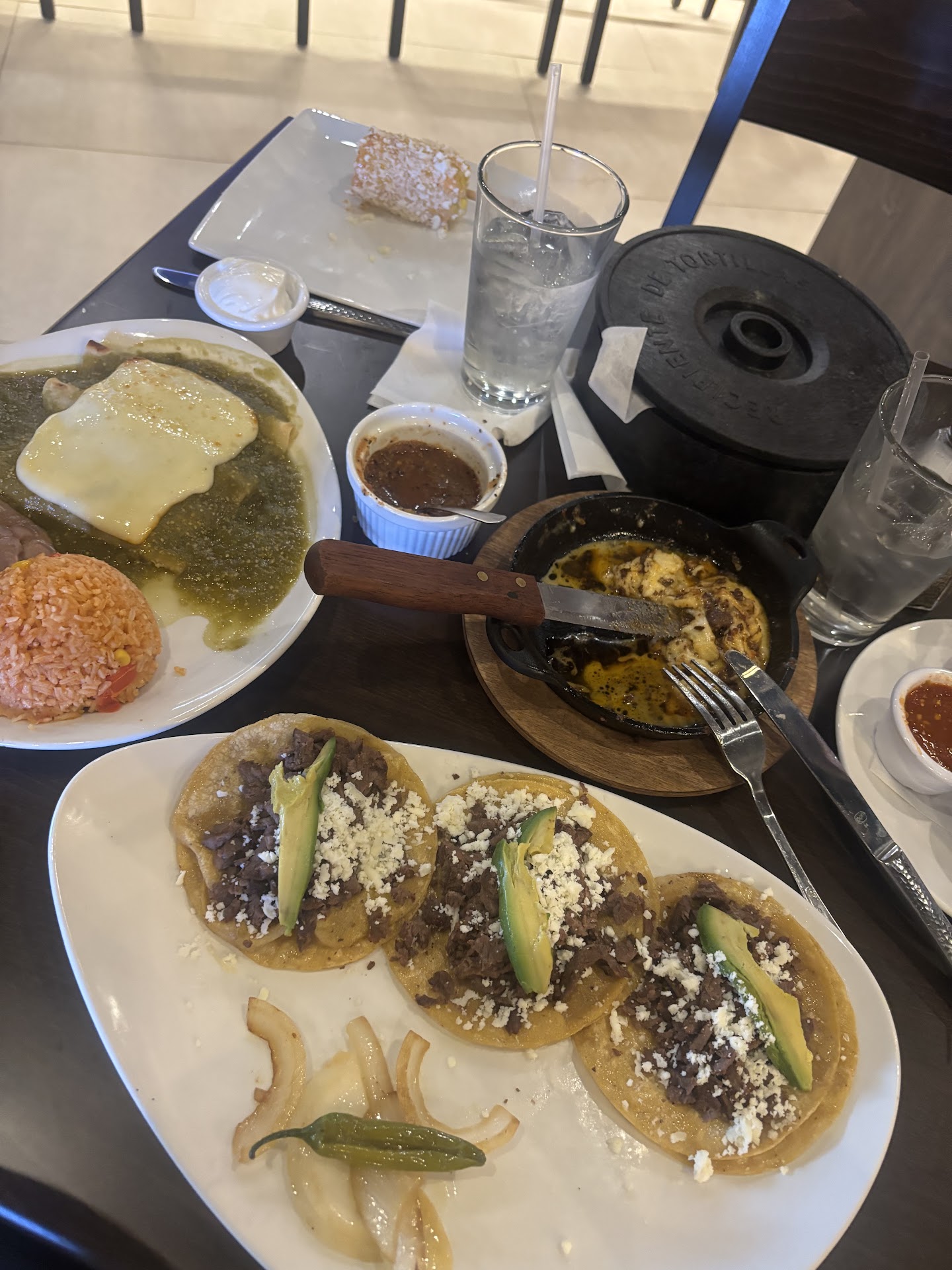 Read moreWe went on Monday and I was impressed with the new restaurant. The inside was very nice and I liked that they have a patio. Once you are seated they bring you a tiny basket of tostadas, which were warm, along with a small cup of salsa, refried beans, and an overly heated, crispy flour tortilla. I know here in El Paso we are used to big servings, but I'll warn you, this restaurant is the opposite. The salsa in the beginning is small, the basket of tostadas, also small, the salsa, and guacamole they bring for the tacos are small. I got the carne de res tacos, which were good, and small. The frijoles charros are also is a tiny bowl. I think that's the only thing I was not impressed by, the frijoles charros. They are overpriced as a side and the recipe is not like mine or what you find in other restaurants. The spoons are also tiny for the frijoles! I loved my classic frozen margaritas! They were nice and strong! We also got the elotes as an appetizer, they were delicious. And last but not least, Ramses, our waiter was excellent! He provided great service, he was shy at first, but I told him to relax, which he later did. I will go back next time and try out the chicken and potatoes or perhaps...