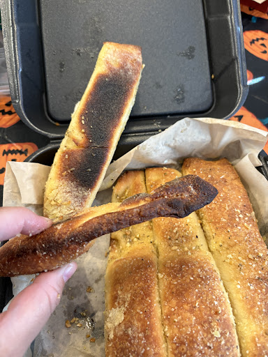 Before our two friends brought us our stuff, we told him that we /did/ purchase something before having to run out, but he basically deemed us of lying because oh, we're higschoolers. I'm pretty sure he saw my same friend and I go /get/ the two pizzas when they were ready, since we were right in front of him for like three minutes