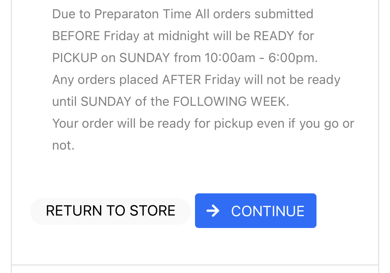 I preordered my food on Friday 02/25 at 5:00am. I went today to pick up my order today 02/27 and they tell him too bad so sad the cut off for ordering is Thursday. I call the phone number on his email and the lady is like well that isn't our website. She then refused to let me speak with the owner. DO NOT BUY. THEY TAKE YOUR MONEY and DONT GIVE YOU YOUR MEALS. Please reference the picture below. Nothing in that screen shot says Thursday. Also there is no information on the 3- different sizes they have. Like what am I am getting with each size. This is how they rip you off more. Im sure they put the same amount of food...