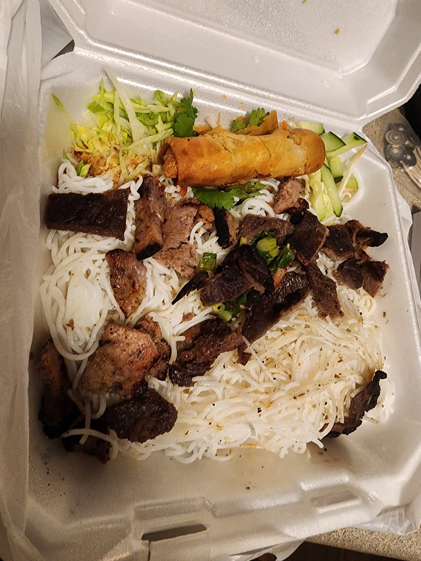 1 out of 5 would not recommend and will not be returning. I ordered the vermicelli special with 2 shrimp spring rolls for take out. No name was taken when placing the order so when picking up the order, they were unsure of who the order was for. That's not too big of a deal, what I'm upset about is the quality and quantity I'd meat on my vermicelli. You could count the pieces of meat and it was overcooked. I also asked for additional sauces which were. 99 a piece and did nothing for all the noodles that were in my meal. These two dishes cost $28; it's...