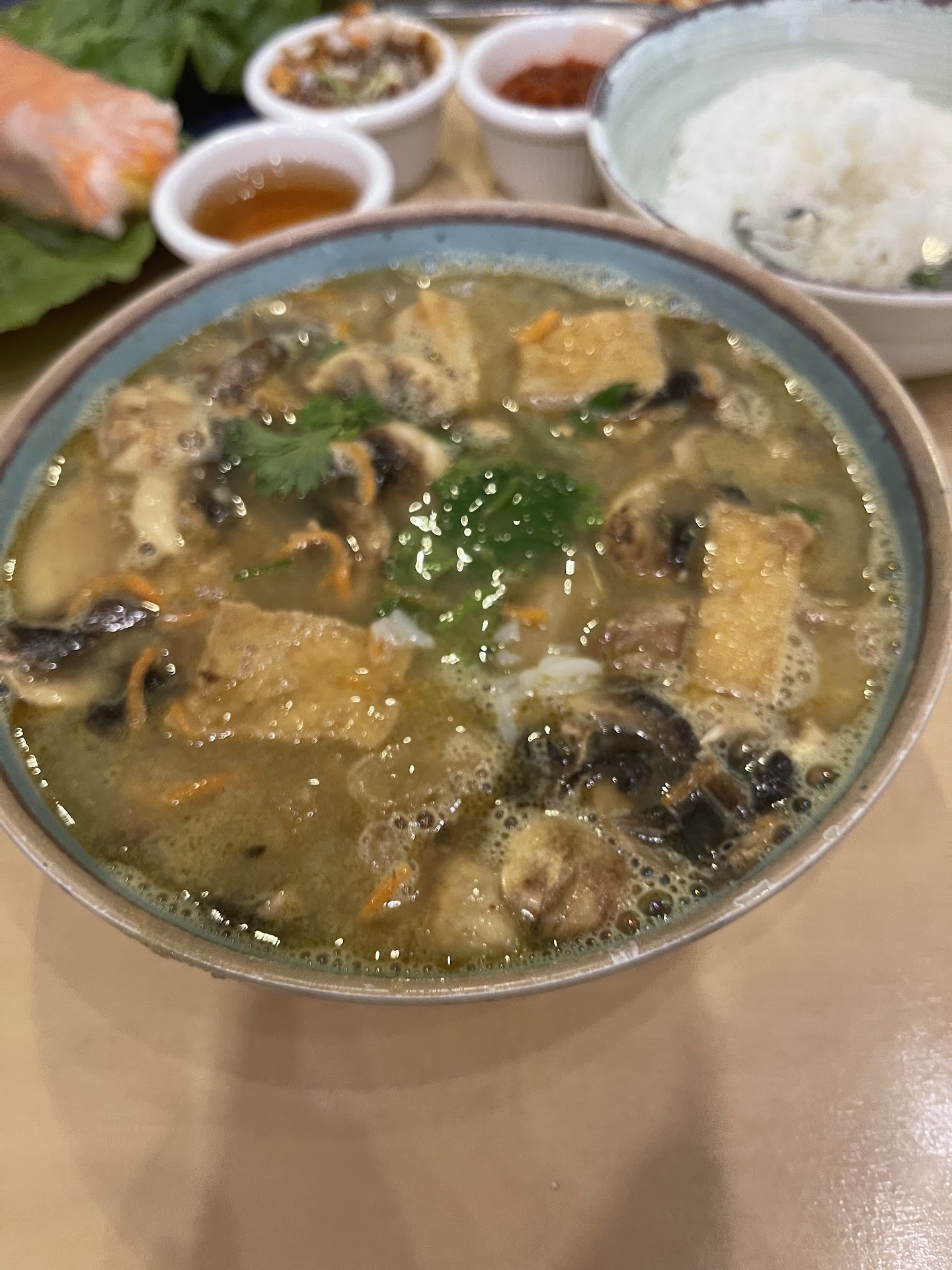 The pho that was served had brisket, chicken and the expected garnishes. My family/party of seven truly enjoyed the flavors and the inviting atmosphere that this place provides and I can't wait to visit again when they officially open to the public.