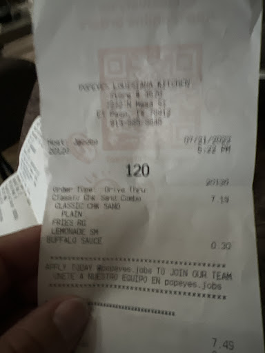 Read moreLet me start by saying my rating is based on the service, not the food. The food was fine, normal Popeye’s.