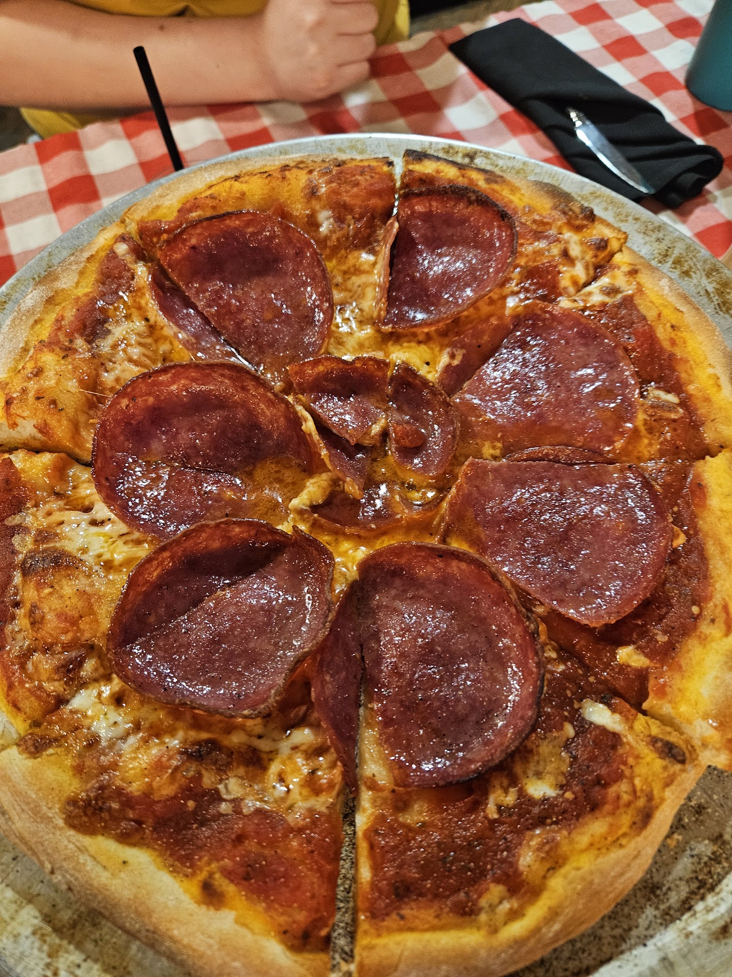 Soon after our drinks arrived the manager came out with plates of the same sample they were giving to the Bites of Fright taste tour patrons. They insisted we sample too. Then the manager informed us they also put in an order for us for a large pepperoni pizza. We insisted that was not necessary, but they insisted we enjoy our night too! The sample for the bites tour was a delicious lobster stuffed ravioli, the creamy pesto sauce was AMAZING! We licked the plates clean. When we said how delicious it was, the manager went and got the Chef to visit our table. My daughter is in the Culinary program at Riverside and plans to pursue her degree in Nutritional Science, but can be quite a finicky eater. The Chef took the time to talk to her about seasoning things to perfection, that's what culinary is, making food savory and enjoyable. We were just blown away by the amazing generosity and welcoming we got from the entire staff!! We are already planning an evening of dinner and drinks with our friends...