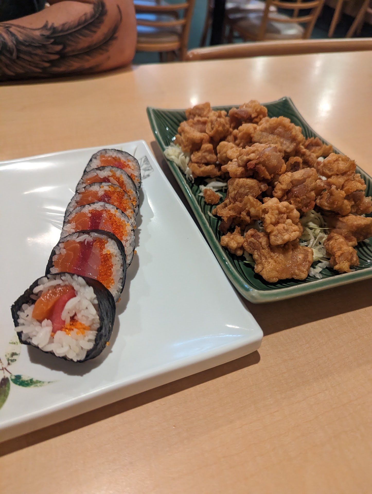 Read moreSushi is fresh, rice is delicious, their green tea was more like hot water and I had to ask for more matcha in order to even taste the tea. For the price point I would have expected more for my money. I would say this place is extremely overpriced, other than that the food is very good, the selection is excellent, and the exhibition is on point. However, I don't like feeling like I'm still hungry when I leave someplace I spent $75. They didn't even offer us free miso, nor did they give a salad per policy, even though we ordered well above their $10 worth of sushi. The reason why I know that this is what they were supposed to do, is that I saw a little sticky note from the management to the employees to serve these things, but we recieved neither. Again, for the price point, I would have expected cold, filtered water, but what we got was lukewarm tap water with some half-melted ice. Our drinks never did cool down, and the taste of the water left me feeling unsatiated. For two people, we got a very small amount of ginger; to properly enjoy sushi, one must take a piece of ginger between bites of sushi in order to cleanse the palate. There simply was not enough for that practice, and when we receive more plates, they did not refill the ginger until we requested more. Overall, I felt there is much to be desired. What can be learned here, is that there is more to what can be called a great night out then just good food. One can get great food, at a more modest price, and have a wonderful time elsewhere. I feel as if everything should have been up to the same standard as the sushi chef gave to his creations. As it was, I left feeling as if there was much...