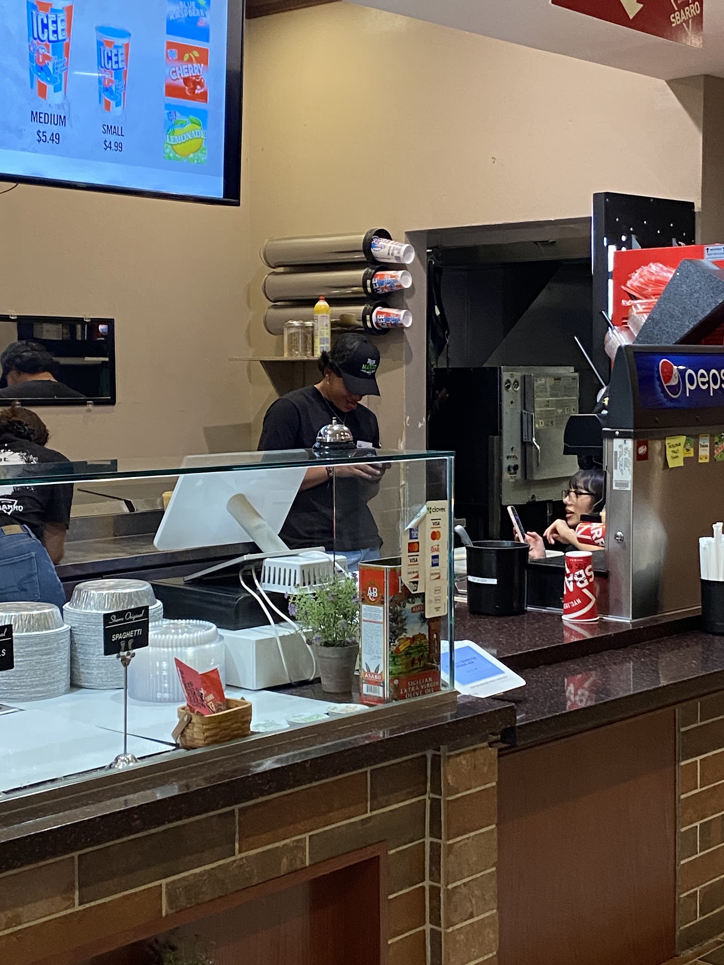Yikes! The price is way too high! I paid $18 for 2 slices and no drink. The other location in El Paso you can get 2 slices and a drink for $12.69. Not that long ago you could do the same at this location. I’m not sure what happened but this place has turned into a total ripoff. You can get a whole sbarro pizza at the other locations for $23. Not sure what has happened here. The prices in store do not match their prices on the website. Online, they offer combos, but not in the store. Not that long ago the menu matched the online pricing. The owner is ripping people off. No wonder the reviews of this...