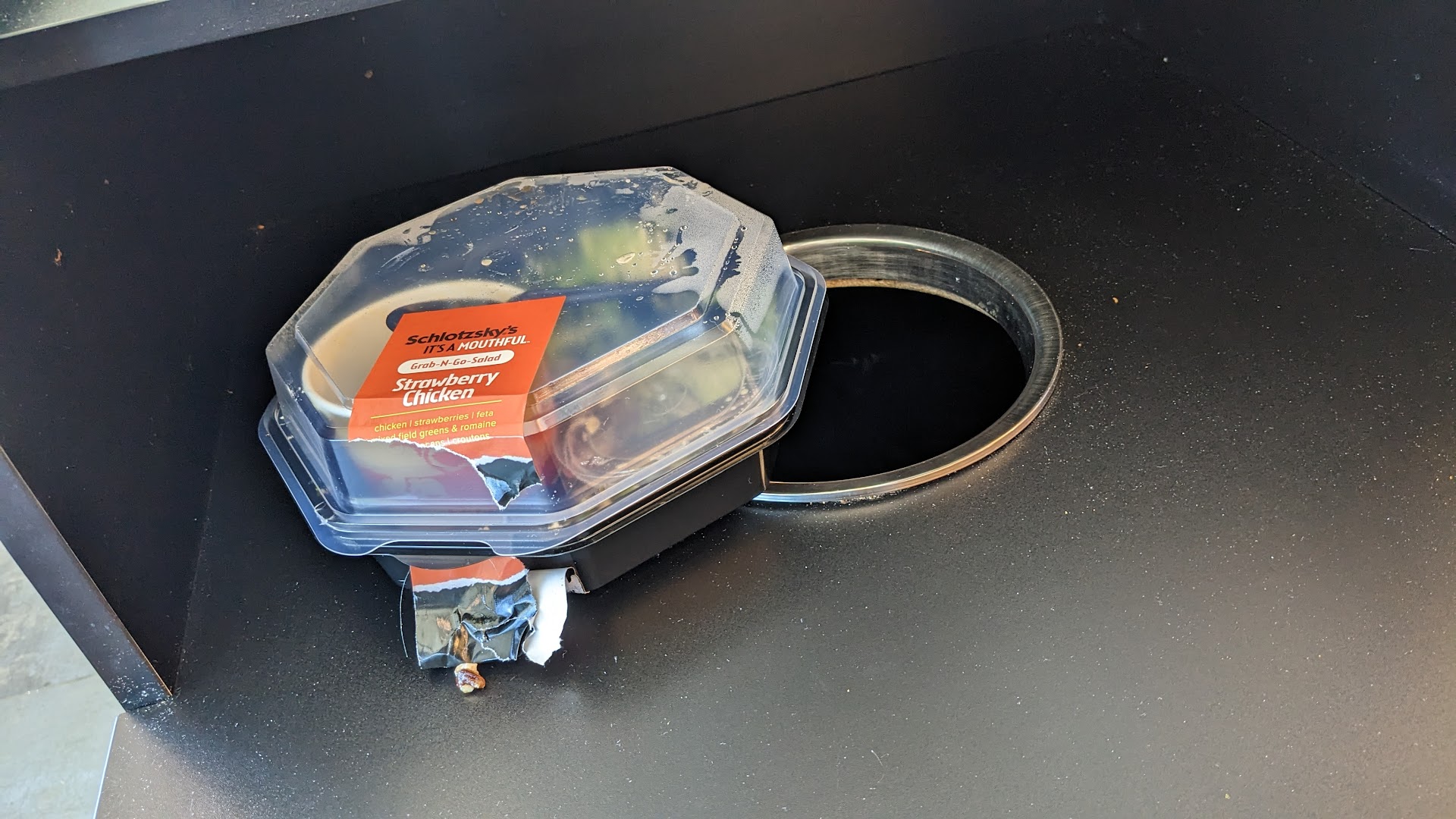 Ā Ā Ā Read moreI ordered soup and salad. The lettuceš„¬ in the STRAWBERRY šSALAD š„ appeared to have been previously frozen so looked spoiled. But the strawberries, feta, nuts were good. The POTATO SOUP was delicious. I liked that they put some shredded cheddar and bacon on top. And for the airport, may I suggest trash cans that fit the containers from nearby...
