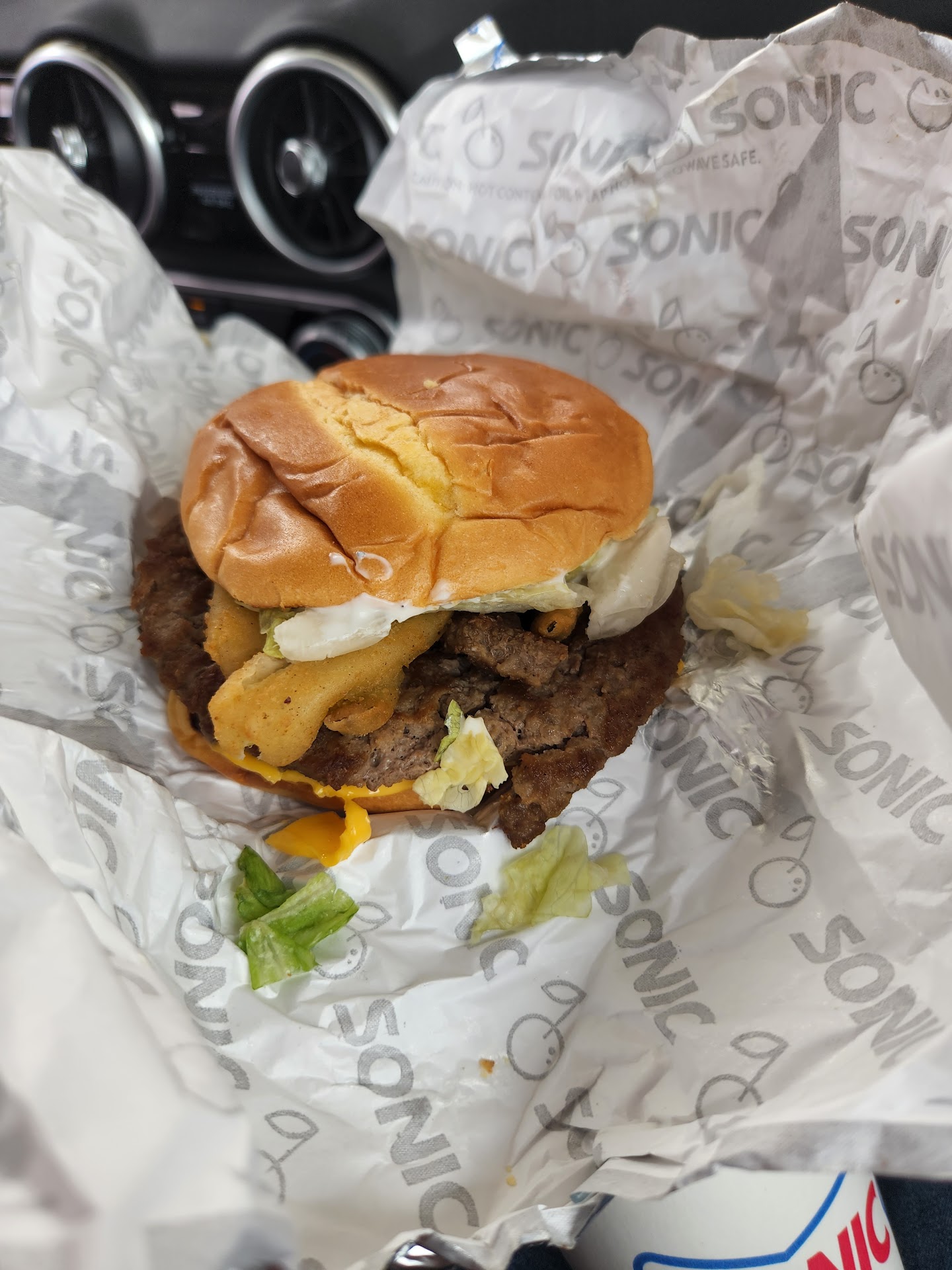 Read moreGot home late the other night (I also work at a restaurant) decided to go to sonic. There one maybe two other cars in the stalls, so I go and press the button, wife and I sat there watching cars come in and out of the drive through while we got ignored for like 20-25 minutes. I yell over when the window opened, poor girl looked like she couldn't handle the situation so she said to just go through the drive through. It really wasn't that busy but we get to the window and you got one guy nose down in his phone, the one making the food just couldn't be bothered just absolutely not a care in the world, then the two at the window are the only ones putting in any effort at all. Took forever then my shake was melted by the time I got it. The food itself was good, it's consistent to what sonic makes but the place is poorly managed, probably treats their employees like trash while paying them minimum or just above minimum. Ended up eating at the stall then leaving. Atmosphere I gave a 1 star because all the homeless that are there when you're...