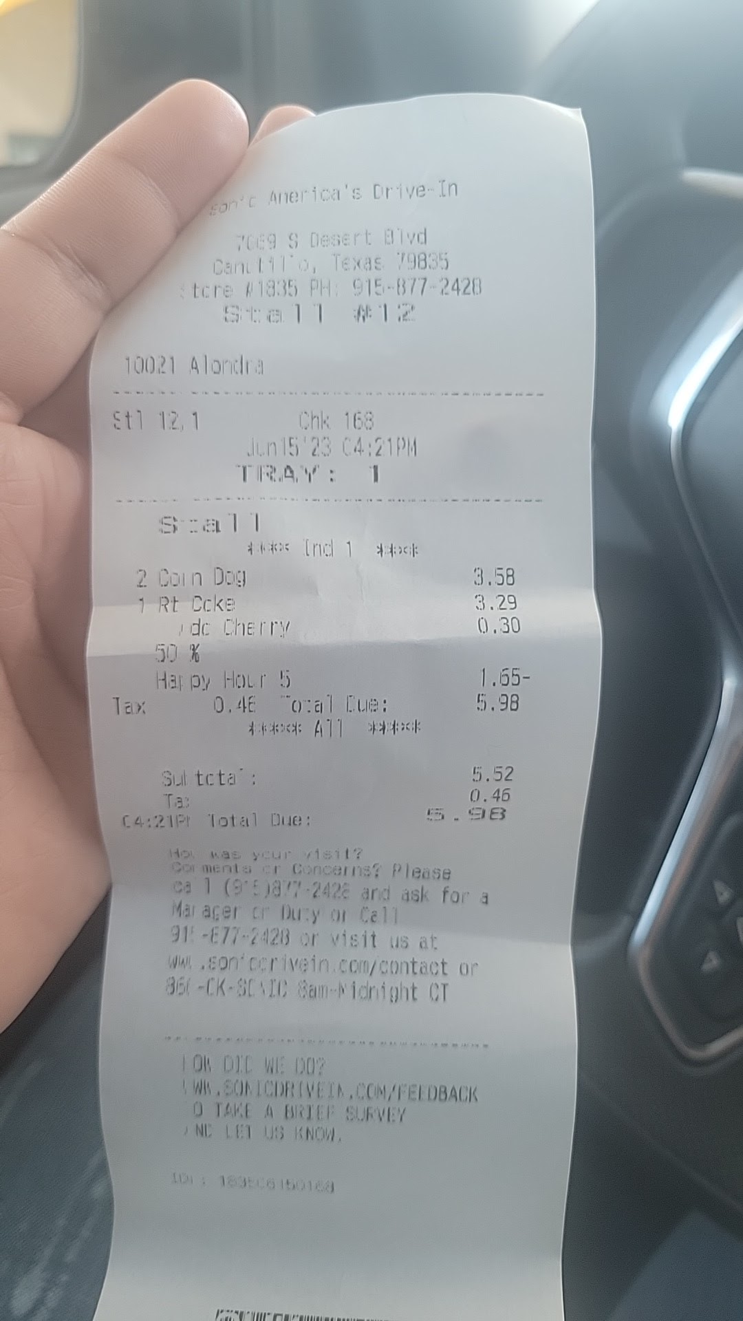 This recent occurrence was on August 10th. I suggest that you read the other reviews and avoid this sonic. Grab a burger from Whataburger, Dairy Queen or...