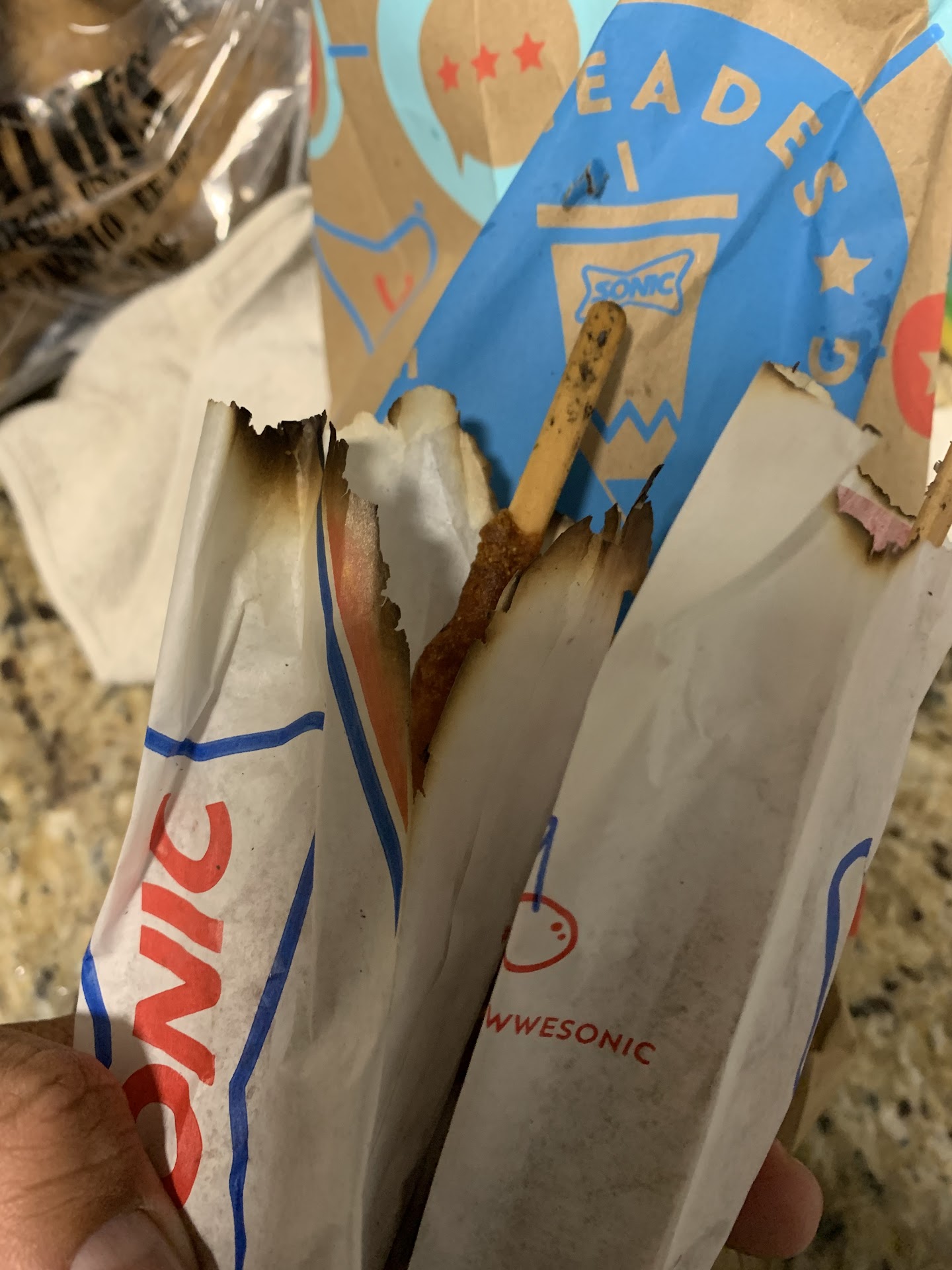 I've never gotten the food as horrible as I did today... what a disappointment. I went over for some breakfast burritos, craving them badly and as soon as I opened it to began eating it I stayed in shock, the burrito was packed with jalapeños. It had so many jalapeños that that was all I could taste. I ended up throwing the burritos away and calling sonic on edgemere to complain because that's where I had gone for my burritos. A manger picked up the call, name rifle or rafel and understood me apologized and told me to please go over again to get the burritos better made. I agreed and stopped by later, when I arrived he was at the drive threw window. I kindly let him know what I had gone threw showed him some pictures and let him know I was no longer craving breakfast burritos again. He apologized again and offered me a slip with his initials saying two meals free, I was happy for his understanding. Then later today I went over again craving the #5 combo, ended up getting two of those, one for my mother and one for myself. When I received the order threw the window there was a young gentlemen very kind and respectful handed me my order, I checked it asap and saw the onion rings were pretty burned. I left because there were many people behind but parked on the side and showed them to my mother threw the phone and she even admitted they did look very burned. I returned to the window and told the lady receiving the orders my onion rings were burned, she said go ahead and come to the window and brought some out asap. They were better but still not as good as other days that I've ordered them. Well I decided to head home and eat my chicken sandwiches #5s. When I opened it, it was full of mayo, bread was squashed and soggy, soggy tomatoes, not fresh, lettuce was horrible soggy, old. The chicken tasted old too with the surrounding hard. It...