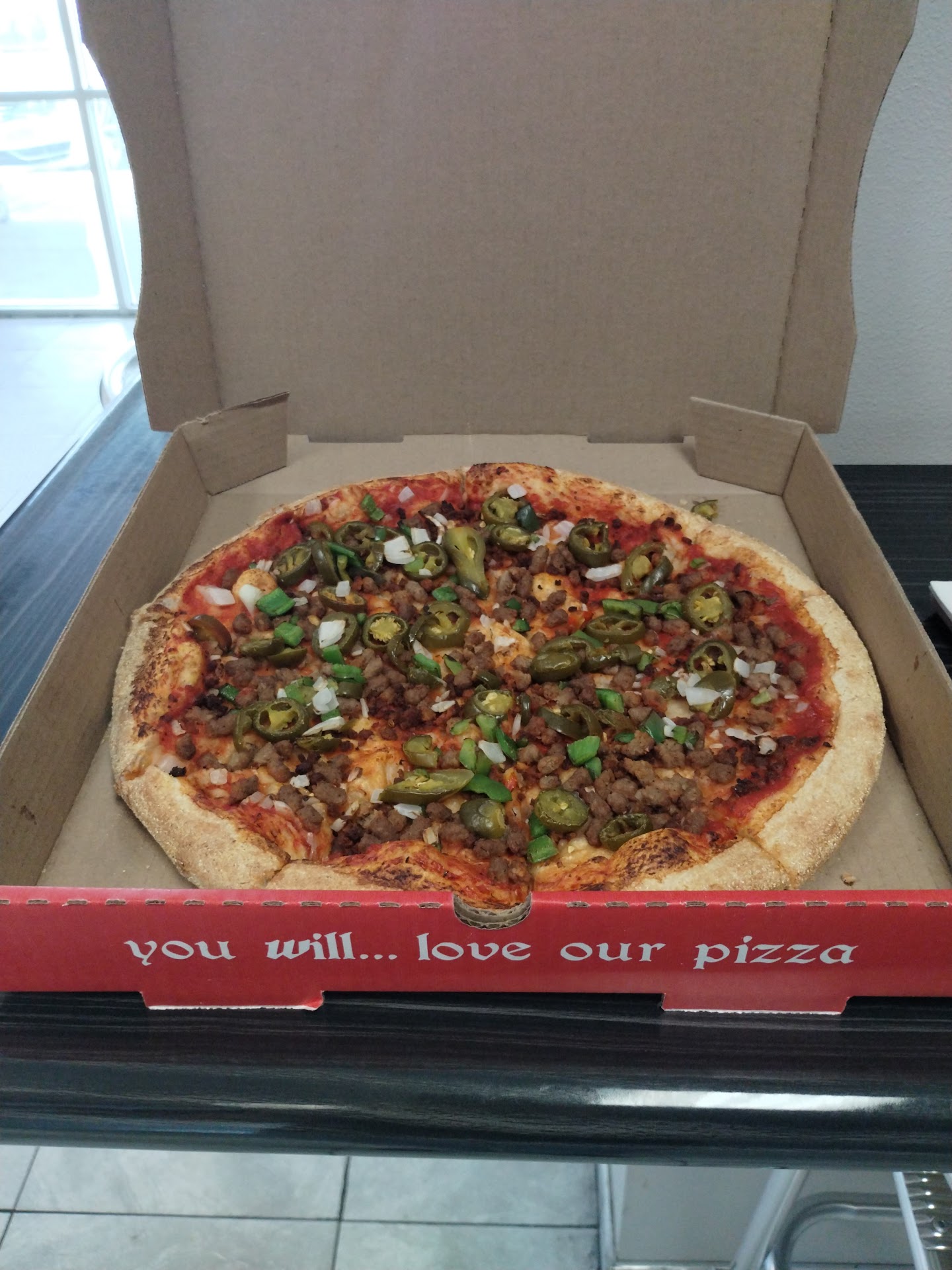 - minus one ⭐- because I asked if they had vegan cheese. The first girl said "Yes!" .then once the 2nd girl took my order. She said they were out of vegan cheese. I asked if they could add Italian seasoning to the pizza, she said they have never heard of anyone asking for it. I thought it was a staple to have Italian seasoning in all pizza places, after all it's Pizza what they're making! Anyways. Their customer service is great with room for improvement. . my "La Mexicana" pizza, smells delicious and looks pretty good. Fast service.