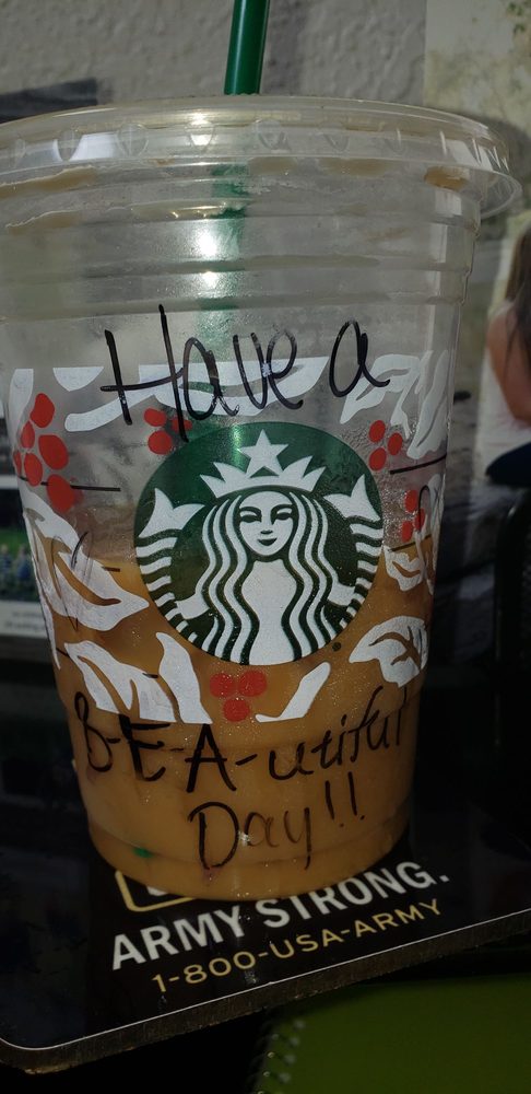 Read moreI really like my neighborhood Starbucks not just because it's in my neighborhood but because the people that have worked there are my neighbors. This morning was no different with one exception. Today the Starbucks employees went above and beyond as I've seen them do for others they did for me. I spilled my drink on my way away from the drive thru and I pulled over to clean up my mess. it didn't take long after that an employee walked out a brand new drink for me. While this may be a small act to some it was a huge act to me because it was the idea that they noticed, took it upon themselves to provide great customer service and run out before I could drive away. This type of customer service is rare and I value it greatly this is why I write this review today to explain that every person I've encountered at this Starbucks working behind the counter provides the best customer service each and every time making it all the worthwhile to go out of my way to only get my coffees...