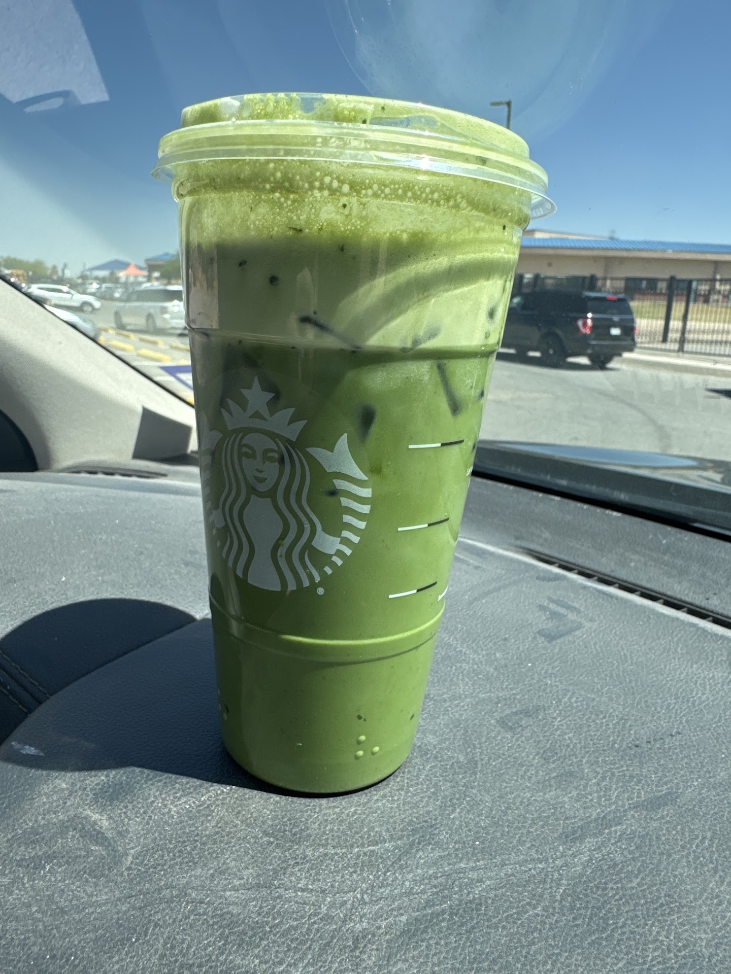 Read moreI usually go to the Starbucks every morning and never had any issues with my drink. Never had any issues with my food. But the last three weeks since moving I needed a little extra Pep in my step and I have tried to go to Starbucks this in particular. They absolutely cannot make a caramel macchiato without burning it Morning shift or evening shift. And they cannot make a lavender Matcha The afternoon shift. You would think that I would’ve learned my lesson and stopped attempting to go there but between time constraint to go and pick up my daughter from school, I’m having to wait in the hot line and just want to pick up a quick drink, I went against my better judgment and give him another try again. This Has to be the sixth or seventh time they have messed up a lavender Matcha putting so much Matcha in the drink that Is past the recommended amount making a taste absolutely disgusting that you can’t even drink it. This time I got a small one for my daughter grande so medium. So not only did they mess up mine. They also messed up hers. Leaving me in this line in the heart with no drink because now it’s undrinkable. Wasting my money on improperly made drink.(2 improperly made drinks). Not even stirring in the lavender cold foam on top could Fix it. Look how dark it is and that’s after mixing it. Here’s a small one I haven’t mixed. mainly now three stars in the morning shift typically does a good job besides That one drink, but the afternoon shift needs serious...