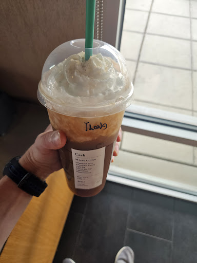 I used to go to this location exclusively. Now I doubt I'll ever return. Unfortunately, they now have some very dishonest people working there. My partner and I both ordered venti drinks and I asked about a coupon that was available. We were told that the coupon would be applied at the window, not on the screen. We pull up and they had accidentally made one of the drinks grande instead of venti (nbd). They said they would fix the order while ringing us up. Not only did they charge us full price after we asked for the coupon, but they didn't fix the drink. They dumped the grande frap into a venti cup that they had filled with whipped cream. You could literally see the tower of whipped cream under the drink. As you can imagine, it was disgusting and had to be thrown away. I don't get to have Starbucks often (I moved to a small town that doesn't have one) so I was really looking forward to this visit and this experience completely ruined the entire company for me. I even threw most of my drink away because it made me upset every time I took a sip. I'm sure most of the people who work there are lovely, but there's no way that someone could have done something that dishonest without someone else noticing and choosing to...