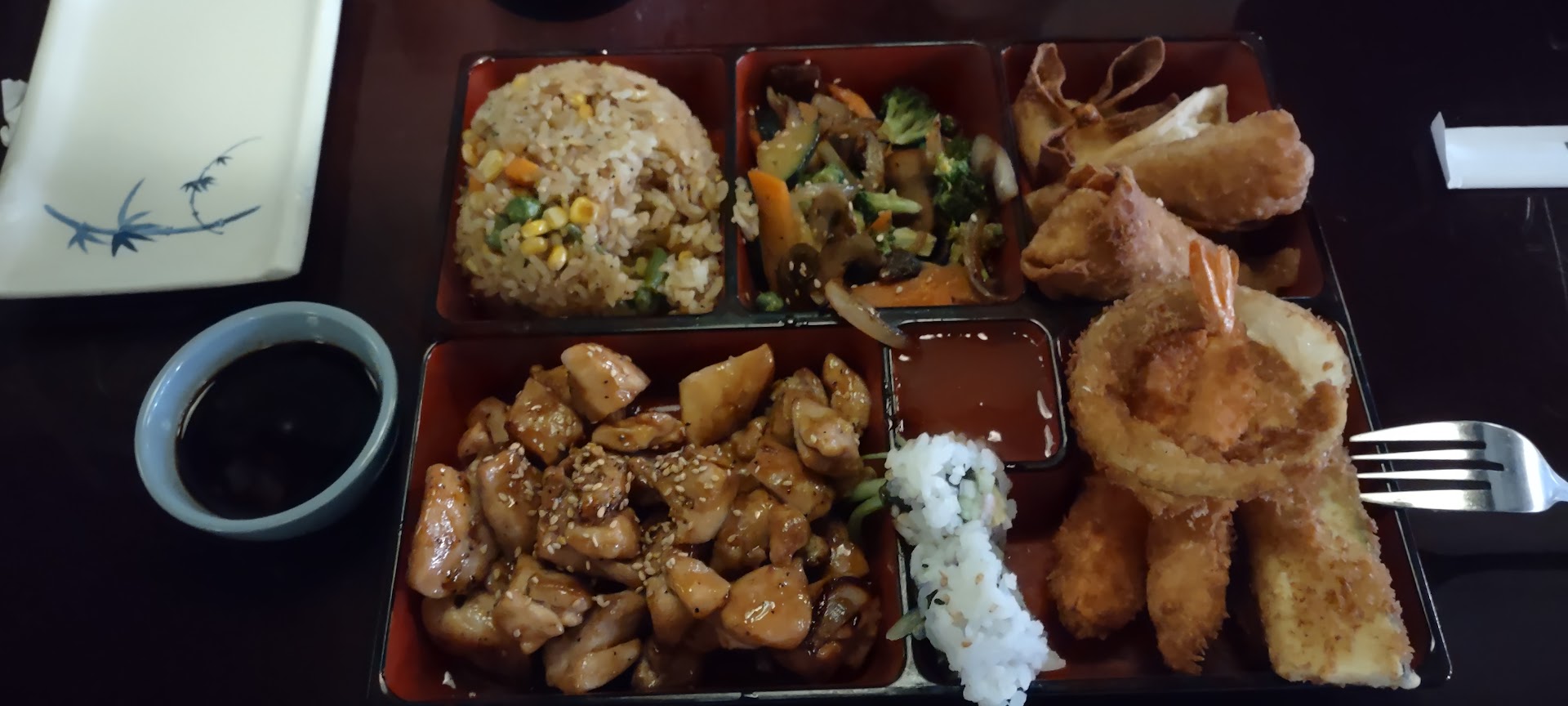 Sad that I have to leave this review but it was simply horrible. Idk what happened this place used to be great and that's why we went back. The hostess was great and attentive so kudos on that. The waitress took a bit long to show up and take our order which were ok with. Mind you there was only about three tables in the whole place. Looking at the menu I noticed that the prices where higher than last time as far as I can remember. We ordered some hibachi, chicken fried rice, teriyaki chicken and a roll for my party. The food took a while to come out, I noticed that they were putting out to go orders as well while we waited, problem is more to go orders came out of that kitchen than our meal and the others tables. The roll came out first and it was good, then it came the hibachi, I could not believe my eyes when I saw this 21 dollar plate, it simply looked like something you get at the Chinese place at the mall for 6 bucks. Everything on that plate was straight out soaked with teriyaki sauce and trust me I had hibachi in multiple other places and they don't look like this. A little later on we got the chicken fried rice and guess what it tasted exactly the same as the hibachi go figure. Basically same plate but rearranged to be able to charge the 21 bucks. Anyway the teriyaki chicken never arrived I don't know if they forgot or they were too busy putting out to go orders or what. At the end the waitress just asked us if we wanted to take it to go. We paid and left to never come back again. My recommendation to this place is look for better cooks, and look for someone that's able to properly manage the joint, if you don't you will find your place go on downwards and before you know it boom your closed and out...