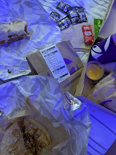 Read moreIâve never had terrible service like I did today. We got there & the cashier INSISTED we use the device to order our own food. While she went to the back to talk to the other cashier. When we get out food our order was wrong of course. Some tacos we ordered were missing our sour cream. (But they are very quick to charge for sour cream) As I go to take back the messed up order I wait to get some Cinnabonâs I did not get. The guy in the back asked the cashier that was standing there doing NOTHING to get them for me & she complained as she went to go get them. When she came back to give them to me she made a comment about how âeveryone is pregnantâ as my child was sitting in the back crying. When I get back to my seat I notice the Cinnabonâs are DRENCHED in oil! Then I take a bite of my taco (one I had ordered WITHOUT sour cream & I had huge blobs of it with little to no meat....